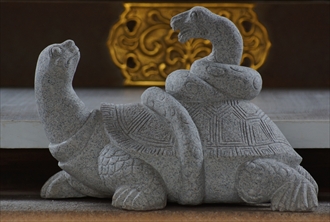 玄武神社(げんぶ-じんじゃ)は、京都の北方に位置し、王城の鎮護神として祀られている。玄武とは、四神相応(しじん-そうおう)の守護神(青竜、朱雀、白虎、玄武)の、北・冬を司る玄武に由来している。 かつて「亀宮(亀の宮)」といわれた。玄武の図にある亀に絡む蛇より、境内の池に亀が放されていたことによる。中世には「赤社」ともいわれた。「惟喬社(これたかの-やしろ)」とも別称されていた。 祭神は惟喬親王(これたか-しんのう)を祀る。 方除、厄除、疫病除けなどの信仰がある。玄武は商売繁盛・長寿の御利益がある。 ◆歴史年表 創建、変遷の詳細は不明。 平安時代、元慶年間(877-885)/878年、大宮郷の郷士・若宮八幡宮神職・星野市正茂光(ほしの-いちのかみ-しげみつ)が、惟喬親王の怨霊の慰霊、王城北面の守護のために、親王寵愛の剣をこの地に祀り御霊代(みたましろ)としたのが起こりという。この剣は、惟喬親王の外祖父・紀名虎(きのなとら)が所有していたものという。また、紀名虎が、親王寵愛の剣をご神体として祀ったことに始まるともいう。 966年、勅命により、山城国最初の鎮花祭が行われている。 現代、1963年、現在の社殿が再建された。 1975年、「玄武やすらい花」は、文化庁の「無形民俗文化財」に指定された。 1987年、「玄武やすらい花」は、国の「重要無形民俗文化財」に指定された。 ◆惟喬 親王 平安時代前期の皇族・惟喬 親王(これたか-しんのう、844-897)。男性。法名は素覚、通称は小野宮。第55代・文徳天皇、母・静子(紀名虎の娘)の第1皇子。850年、右大臣・藤原良房の娘・明子との間に第4皇子・惟仁親王が産まれ、第1皇子・惟喬親王ではなく、良房の外孫で生後8カ月の惟仁親王(第56代・清和天皇)が皇太子になった。この先例のない皇位継承は、文徳天皇が良房に気兼ねし、また、惟喬親王の母が紀氏の出身であったことも起因しているという。皇位を失った惟喬親王は、大宰帥、弾正尹、常陸太守、上野太守などの役職を歴任した。その後、病のため出家し、素覚と号し、洛北小野に隠棲した。別業、渚の院(河内国)では紀有常、在原業平らとの交流があったという。各地で木地師の祖との伝承も根強い。54歳。 ◆星野 茂光 平安時代の星野 茂光(ほしの-しげみつ、?-? )。詳細不明。男性。星野市正(いちのかみ)茂光。惟喬親王の母方の末裔であり、この地に住んでいたという。大宮郷の郷士、若宮八幡宮の神職を務めたという。 ◆紀 名虎 平安時代前期の貴族・紀 名虎(きの-なとら、?-847)。詳細不明。男性。父・勝長(梶長とも)。備前守、中務大輔、844年、刑部卿に補任された。娘種子は第54代・仁明天皇との間に常康親王、真子内親王を産む。娘・静子は第55代・文徳天皇との間に惟喬親王、惟条親王などを産む。だが、いずれも皇位継承は実現できなかった。 ◆玄武・四神 本殿正面の扉内に、四神(しじん)の一つ、北方を守護する玄武(げんぶ)の石像が祀られている。玄武は神獣であり、亀に蛇が絡んだ姿をしている。 四神とは、四禽(しきん)、四獣とも呼ばれ、中国の戦国時代に成立した天の四方を守る霊神であり、『礼記(らいき)』(儒教の経書で五経の一つ)に記されている。四方の内、東方は青竜(せいりゅう)・西方は白虎(びゃっこ)・南方は朱雀(すざく)・北方は玄武とされた。また、四季の春・夏・秋・冬にも配された。 飛鳥時代の708年旧2月15日条の『続日本紀』には、平城京遷都は「四禽図(陰陽図緯)に叶い、三山鎮(しずめ)を作(な)」す地を選んで都とし、平安京造営時には東に流水、西に大道、南に窪地、北に丘陵をもつ四神相応の地相が求められたとされた。 正月三か日、毎月1日・10日・15日に本殿扉が開かれ、玄武の石像が拝める。 ◆やすらい花 「玄武やすらい花」は、平安時代以来の疫神送りの花鎮め、鎮花祭に由来する。 かつて、大徳寺東門付近にあった雲林院村の祭りだった。ここには、紫野院(のちの雲林院、うりんいん)があった。平安時代中期、965年に、都で大水があり疫病が流行った。翌966年、勅令により玄武神社で、京都で初めての鎮花祭が行われたという。 江戸時代前期、1616年に雲林院村で火災があり、祭りは上野村が代わりに引き継ぐ。その後、雲林院村での祭りは中断する。近代、1882年に復活した。 現在、雲林院町で「玄武やすらい花」(4月第2日曜日)が催されている。花傘、羯鼓(かんこ)回し、小鬼(羯鼓)、大鬼と続く。鬼は、太鼓と鉦に合わせ飛び跳ねて踊り、疫病神が荒れ狂う様を表す。 玄武やすらい踊保存会により行なわれ、文化庁の「無形民俗文化財」(1975)、国の「重要無形民俗文化財」(1987)などに指定されている。 ◆年間行事 歳旦祭(1月1日)、本殿玄武の開陳(正月三か日)、毎月1日・10日・15日に本殿扉が開かれ玄武の石像が拝める。節分祭(2月3日)、初午祭(2月中旬)、やすらい祭(宵宮祭)(4月第2土曜日)、玄武やすらい祭(4月第2日曜日)、七五三まいり(11月)、新嘗祭・御火焚祭(11月23日)、御火焚祭・大祓式(12月31日)。 月次祭(毎月1日、15日)、崇敬
