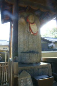 浄福寺(じょうふく-じ)は、朱塗りの山門が浄福寺通に面している。「日本最古の違法建築の寺」として知られる。「引接地蔵」と呼ばれる地蔵尊が安置されている。赤門があることから「赤門寺(あかもん-でら)」、「村雲(むらくも)寺」ともいう。山号は恵照山(えしょう-ざん)という。 浄土宗知恩院派、本尊は阿弥陀如来。 江戸時代の洛陽四十八願所地蔵めぐり(京都四十八願寺)の第14番(7番とも)札所、札所本尊は浄土引接地蔵。 ◆歴史年表 創建、変遷の詳細は不明。 奈良時代-平安時代、延暦年間(782-806)、奈良・興福寺の学僧・賢憬(けんけい)が葛野郡村雲に堂宇を建立した。唐より将来した釈迦如来像を安置したという。平安時代には、二十五大寺のひとつとされた。(寺伝、『拾芥抄』)。当初は天台宗だった。一誓を開山に迎えたともいう。 また、平安時代、896年、第58代・光明天皇中宮・班子(はんし)が建立したともいう。天台宗と法相宗の年分度者2人を出す。定額寺に列せられ、「浄福寺」の額を贈られたという。(『類聚三代格』) 901年、宇多法皇(第59代)は、亡き母・班子女王のために当寺で一切経を供養する。(『日本紀略』) 912年、焼失する。 960年、焼失した。 天台僧・良源(912-985)が西坂本(左京区)に再興する。 再び焼失する。 鎌倉時代、1276年、第91代・後宇多天皇の勅により、一条村雲(上京区)に移る。以後、「村雲寺」とも呼ばれた。(『拾芥抄』) 14世紀(1301-1400)初め、臨済宗・仏燈国師(約翁徳倹)の一門が住した。 1318年、後宇多天皇の命により、鎌倉・建長寺の元暁(がんぎょう)が住した。 南北朝時代、1344年、元暁の請願により室町幕府の祈願寺になる。室町幕府初代将軍・足利直義が300貫文を寄付する。(『浄福寺由緒書』) 1482年、宗清が天台宗に改めた。 1525年、第104代・後柏原天皇は、知恩院・超誉存牛に帰依した。当寺の三昧堂建立を許し、「念仏三昧堂」の勅額を寄せる。「天台浄土宗」と称し、以後、浄土宗を兼学にする。 1571年、崇林(そうりん)が入寺、浄土宗専宗に改めた。 1572年、知恩院末寺になる。 安土・桃山時代、1587年/天正年間(1573-1592)、相国寺門前北に移る。 江戸時代、1615年、現在地に移る。京都所司代・板倉勝重が援助したという。 1628年、鐘楼が再建される。 寛文年間(1661-1673)、浄土引接地蔵は第112代・霊元天皇の命により、僧・宝山が洛外・六地蔵以外の48か寺の地蔵尊を選んだ、洛陽四十八願所の霊場のひとつになる。 享保年間(1716-1736)、鐘楼、南門を除き焼失したともいう。 1719年、焼失したともいう。 1730年、旧6月20日、享保の大火(西陣焼け)で類焼した。災禍翌日、焼失した報恩寺、浄福寺、大超寺、護念寺、瑞雲院、親縁寺各庵、香林寺、無量寺、善福寺の9寺は、知恩院へ被害を届けている。(『知恩院日鑑』) 1731年、西陣焼けでは焼失を免れたともいう。(『西陣天狗筆記』) 1731年-1733年/1733年、現在の本堂が再建されたともいう。 1736年、方丈が再建される。 1756年、釈迦堂が再建された。 1788年、天明の大火により焼失する。本坊は類焼を免れた。(『翁草』) 幕末、境内は薩摩藩下級武士の宿所になる。藩士らは「浄福寺党」と呼ばれる。 近代、1887年、境内に当寺、建仁寺、本圀寺、妙覚寺による共済学校が開校する。現在の浄福寺幼稚園の前身になる。 現代、1985年、本堂以下9棟が京都市指定文化財になる。 ◆賢憬 奈良時代の法相宗の僧・賢憬(けんけい、714-793)。男性。賢璟。尾張国(愛知県)の生まれ。興福寺の宣教に師事、754年、唐の僧鑑真を難波に迎え、755年、旧戒を破り鑑真に具足戒を受けた。758年、唐招提寺に一切経を奉納。774年、律師。778年頃、大和国室生山で延寿法を修し、山部皇太子(第50代・桓武天皇)の病を治した。780年、多度大社神宮寺に三重塔を建立した。宝亀年間(770-780)、室生寺を創建した。784年、大僧都。785年、最澄の戒牒や『多度神宮寺伽藍縁起並資財帳』に、僧綱の一人として署名した。793年、平安遷都選定に際し山背に派遣される。比叡山文殊堂供養で導師をつとめた。賢璟(けんきょう)、尾張僧都、尾張大僧都とも呼ばれた。79歳。 ◆班子 女王 平安時代前期の女御・班子 女王(はんし-じょうおう、833-900)。女性。嵯峨野の旧仲野村の生まれともいう。父・第50代・桓武天皇皇子・仲野親王。時康親王(第58代・光孝天皇)の即位前に妃になる。定省親王(第59代・宇多天皇)、為子内親王ら4男4女を産む。884年、光孝天皇即位により従三位女御、887年、宇多天皇即位により皇太夫人、孫第60代・醍醐天皇即位により皇太后になる。897年、醍醐天皇に娘・為子内親王を入内させる。生前、藤原時平による妹・穏子の入内を拒み続けた。仁和寺で出家し、御室に過ごした。68歳。 ◆川端 道喜 安土・桃山時代の豪商・餅商人・川端 道喜(かわばた-どうき、?-1592)。男性。本名は中村五郎左衛門、通称は餠屋。正親町(内裏近辺)/鳥羽の餅屋・渡辺進(すすむ)に婿入りし渡辺弥七郎と称した。入道し道喜と号した。1504年頃、皇居垣外を流れる御溝(みかわ)傍の新在家(