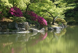 仙洞御所(せんとう-ごしょ)は、京都御苑の京都御所南東に位置している。江戸時代、幕府作事奉行・小堀遠州により作庭され、後に後水尾上皇(第108代)により大改修された広大な回遊式庭園が、静寂に包まれて広がっている。 現在は、皇室用財産(国有財産)として宮内庁が管理している。 仙洞御所 は、「美しき日本-いちどは訪れたい日本の観光遺産」(日本交通公社、1999年)の一つに認定された。 ◆歴史年表 江戸時代、1627年、3代将軍・徳川家光により後水尾天皇の隠居所として仙洞御所、女院御所の造営が始まる。 1628年、仙洞御所に二条城二の丸の御幸御殿、御次之間、中宮御殿、四脚門、唐門が移される。 1629年/1630年、後水尾上皇は30回以上の禁中立花会を催し、仙洞御所では酒宴を開く。 1630年、仙洞御所、女院御所が完成する。後水尾上皇が御所内に移る。上皇は池坊専好を召し立花会を催した。大宮御所も完成したという。大宮御所の造営は寛永年間(1624-1644)ともいう。 1634年、仙洞御所の庭園(初期庭園)が小堀遠州の作庭が始まる。家光が2度参内する。 1636年、仙洞御所の庭園(初期庭園)が完成する。 1641年、仙洞御所より殿舎が移され、伏見稲荷大社の御茶屋となるともいう。 1657年、仙洞御所で浄瑠璃、歌舞伎、能、俳謔などの催しが盛んに行われた。 1661年、内裏(京都御所)、仙洞御所が焼失した。 1662年、旧5月、寛文近江・若狭大地震(寛文京都地震)により被災し、禁裏御所・仙洞御所の築地塀が殆どが損壊した。(『殿中日記』) 1663年、仙洞御所が復興される。 1664年、後水尾上皇が仙洞御所の庭園を大幅に改修し、ほぼ現在の形となる。 1673年、仙洞御所が焼失し、復興が行われる。 1674年、仙洞御所、女院御所が復興した。 1676年、仙洞御所が焼失する。 1677年、仙洞御所が復興した。 1684年、仙洞御所が焼失する。 1685年、仙洞御所が復興した。 1687年、仙洞御所に第112代・霊元天皇が退位して入る。造営工事が始まる。 1708年、内裏、仙洞御所が焼失した。 1709年、内裏、仙洞御所が復興した。修学院離宮の上御茶屋、止々斎を仙洞御所内に移築する。 1735年、仙洞御所に第114代・中御門天皇が退位して入る。 1746年、仙洞御所が改修される。 1747年、仙洞御所に第117代・桜町天皇が退位して入る。天皇の命により冷泉為村が「仙洞十景」を撰した。この頃、仙洞御所と女院御所の庭が堀割で一つに繋がれた。 1771年、仙洞御所に後桜町上皇が移る。 1788年、内裏、仙洞御所、止々斎も焼失する。 1808年、後桜町上皇により茶室「醒花亭」が再建された。 1817年、仙洞御所に第119代・光格天皇が退位して移る。 1830年、旧7月、京都大地震(文政の大地震) で、常御殿・大御殿、東南筑地塀(40m倒壊)が破損した。女院御所の土蔵1棟が崩壊した。(『京都地震実録』『宝暦現来集』『甲子夜話』) 1840年、仙洞御所が空院になる。この頃まで仙洞御所内の御稲田で御田植えの行事が行われていたという。 1854年、旧4月、仙洞御所の女官が、松菰を外し毛虫を焼こうとし、内裏・仙洞御所・女院御所、市街地まで延焼した。(「京都嘉永の大火」「御所焼け」「毛虫火事」)。その後、仙洞御所の建物は再建されていない。 1855年、京都御所とともに現在の仙洞御所の築地が再現される。 1867年、女院御所の跡地に英照皇太后(第121代・孝明天皇皇后)のために大宮御所が造営された。 近代、1872年、英照皇太后が大宮御所より遷都に伴い東京に移る。以後、大宮御所は空院になる。 1873年、第2回京都博覧会が仙洞御所、大宮御所を会場として開催される。仙洞御所では、禽獣会(きんじゅうかい、動物園)が設けられた。孔雀、駱駝の展示があったという。以後、第9回まで続く。 1877年、12月、島津製作所創業者・初代・島津源蔵は、仙洞御所の広場で日本初の水素ガスによる有人軽気球を揚げた。 1878年、大内保存会により御稲田で御田植えの行事が復活する。その後、数年で再び廃れる。 1883年、大宮御所の殿舎の多くが撤去される。 1884年、近衛家より茶室「又新亭」が仙洞御所内に移された。 1895年、10月23日、英文学者・小説家・小泉八雲(ラフカディオ・ハーン、1850-1904)が庭園を訪れている。 1915年、第123代・大正天皇即位式(即位の礼)が京都御所紫宸殿で行われる。引き続き大嘗祭(だいじょうさい)は仙洞御所跡に新設された宮殿、大嘗宮で行われた。(御大礼、ごたいれい) 現代、1953年、大宮御所で戦後初の園遊会が行われた。 1974年、仙洞御所の一般参観が始まる。 2014年、大宮御所の耐震工事が行われる。 2020年、5月、京都市埋蔵文化財研究所は、豊臣秀吉が築城した京都新城のものとみられる石垣の一部、金箔瓦破片が仙洞御所から出土したと発表した。 ◆後水尾 天皇 安土・桃山時代-江戸時代前期の第108代・後水尾 天皇(ごみずのお-てんのう、1596-1680)。男性。名は政仁 (ことひと) 、幼称は三宮、法名は円浄。父・第107代・後陽成天皇、母・関白近衛前久の娘前子(中和門院)の第3皇子。。1611年、後陽成天皇から譲位された。江戸幕府は朝