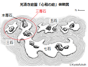 出水通六軒町西入ル七番町(しちばん-ちょう)にある光清寺(こうせい-じ)は、宮家との関わりが深い。伏見宮直属の無本寺格(むほんじ-かく)として宮準門跡に列せられた。かつて岩倉家の菩提寺だった。 「出水の七不思議」の一つ「浮かれ猫」の伝承がある。重森三玲の作庭による庭がある。 山号は心和山(しんわ-ざん)、院号は慈眼院(しげん-いん)という。 臨済宗建仁寺派、本尊は聖観音(聖観世音菩薩立像)。 弁天堂は、三味線・諸芸上達の祈願信仰がある。 ◆歴史年表 江戸時代、1669年、伏見宮貞致(ふしみのみや-さだゆき)親王が、生母・慈眼院殿心和光清尼(安藤定子)の菩提を弔うために、臨済宗・杲山(こうざん)禅師を開山として創立された。(寺伝)。宮家領地の聚楽第に建てられた。また、義浄により開かれたともいう。当初は天台・華厳・真言・禅の四宗兼学とした。初めは、栂尾(とがのお)善妙寺(ぜんみょうじ)村から名義を移し、聲實庵(声実庵、しょうじつ-あん/せいじつ-あん)と称したという。 1701年、焼失する。 1706年、焼失し、伏見宮邦永親王により再建される。祖母・慈眼院殿の法名より「心和山」と号し、寺号は「光清寺」に改められる。以後、近代まで、無本寺格、準門跡に列せられた。 1758年、宮家が江戸に移る際に、鎮守社・玉照(たまてる)神社が伏見宮邸(今出川)より当寺に遷される。 近代、1868年、臨済宗建仁寺派に属する。 現代、1967年、現代の作庭家・重森三玲は「心和の庭」を作庭する。 1974年、重森は庫裡前に「心月庭」を作庭した。 ◆杲山 義洋 江戸時代前期の臨済宗の僧・杲山 義洋(こうざん-ぎよう、?-?)。詳細不明。杲山義洋禅師。1669年、光清寺を開山した。 ◆伏見宮 貞致 親王 江戸時代前期の皇族・伏見宮 貞致 親王(ふしみのみや-さだゆき しんのう、1632-1694)。詳細不明。男性。父・伏見宮第10代当主・貞清親王。邦尚(くになり)親王の子とも。母・少納言局・安藤定子。1660年、第108代・後水尾天皇の猶子、親王になる。弟・邦道親王の跡を継ぎ、第12代当主になる。式部卿に進む。王子女に邦永親王、真宮理子女王(徳川吉宗室)がある。63歳。 ◆伏見宮 邦尚 親王 江戸時代前期の皇族・伏見宮邦尚親王(ふしみのみや-くになり しんのう、1613-1654) 。詳細不明。男性。父・貞清(さだきよ)親王の第2王子。伏見宮家(11代とも)。1626年、親王になる。病のため元服せずに亡くなる。法号は乾徳院。41歳。 ◆慈眼院殿 心和 光清 尼 江戸時代の慈眼院殿心和光清尼(じげんいん-しんわ-こうせいに、 ?-?)。詳細不明。女性。少納言局(しょうなごん-きょく)・安藤定子とみられる。父・安藤定元/安藤定吉、曾祖父は邦輔親王王子・安藤惟実(邦茂王)。10代当主・貞清親王(1596-1654)の側室の一人になる。貞致親王の母。戒名は慈眼院殿心和光清大信女。 ◆伏見宮 邦永 親王 江戸時代中期の皇族・伏見宮 邦永 親王(ふしみのみや-くになが しんのう、1676-1726)。男性。幼名は茶々丸、若宮。父・伏見宮貞致親王の第2王子。1695年、第112代・霊元天皇の猶子になり、親王宣下、名を邦永と賜わる。伏見宮第13代当主になる。中務卿に任じられ、後に一品に進む。妃は霊元天皇第5皇女・福子内親王。51歳。 ◆岩倉 恒具 江戸時代中期の公卿・岩倉 恒具(いわくら-つねとも、1701-1760)。男性。初名は具脩。父・岩倉乗具。竹内式部に神道と儒学を学ぶ。1732年、従三位、その後、参議、1753年、権中納言になる。1758年、竹内、若手公家達らの尊王論者が弾圧された宝暦事件にかかわり、幕府から処罰された。1891年、名誉回復になる。60歳。 ◆重森 三玲 近現代の作庭家・重森 三玲(しげもり-みれい、1896-1975)。男性。計夫(かずお)。岡山の生まれ。1911年、15歳で茶道、華道を学ぶ。1914年、18歳で茶室・露地を設計する。1917年、日本美術学校で日本画を学び、生花・茶道を習得し、文化・芸術のみならず、宗教・哲学にも関心があった。1922年、文化大学院の創設を企図する。結婚した。1923年、関東大震災に被災し岡山に還る。1926年、フランスのミレーに憧れ、自ら三玲に改名した。1929年、美術研究・思想的発展のためとして京都に移る。1931年、日本花道芸術学園を設立する。1932年、日本庭園の研究団体、京都林泉協会の会長職に就く。華道草月流の創始者、勅使河原蒼風(1900-1979)らと生花の革新を唱える。1933年、「新興いけばな宣言」を起草した。1934年、室戸台風で各地の庭園が被災し、1936年-1938年、全国の庭園の精緻な実測調査(300カ所以上)を行う。1949年、前衛的な生花の創作集団「白東社」を主宰し、前衛生花作家・華道家の中川幸夫(1918-2012)も参加した。1950年頃から、アメリカ合衆国の彫刻家・画家のイサム・ノグチ(Isamu Noguchi、1904-1988)とも交流を深めた。78歳。 庭園については、全国の200あまりの作庭に関わる。本格的に作庭した京都では、東福寺方丈庭園(1943)に始まり、京都林泉協会30周年記念の瑞峯院庭園(1961)、最後の作庭は松尾大社庭園(1975)になった。「永遠のモダン」を目指した。 1936年以来、独自に行った全国の庭園
