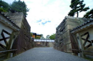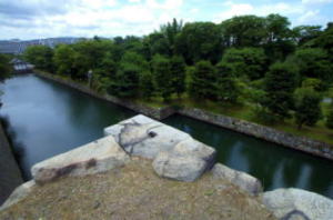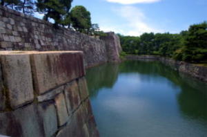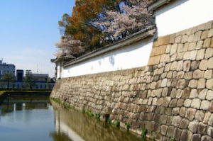 ![]() 二条城内西に復元された「旧二条城の石垣」