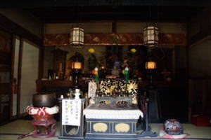麸屋町(ほていや-ちょう)通二条上ル西側に大福寺(だいふく-じ)はある。かつて、広大な寺域を有した。いまは夷川通に面して小堂の本堂だけが建つ。 「菩提薬師さん」と呼ばれている。山号院号は瑠璃光山利生院という。 天台宗、本尊は薬師如来(菩提薬師、ぼだいやくし/ほていやくし)を安置する。 京都十二薬師霊場会第10番札所、札所観音も薬師如来。かつて、京都七福神の一つとされ布袋尊を安置する。京の通称寺霊場15番、菩提薬師。 ◆歴史年表 創建の詳細、変遷は不明。 飛鳥時代、599年、大和国宮田郷(富田郷とも)に、瑠璃光山利生院大福寺として建立された。開山、開基は厩戸王(うまやどのおう、聖徳太子)ともいう。(寺伝) 南北朝時代、1356年、室町時代とも、勅旨により平安京に移されたという。かつて、方八丁(8ha)もの広大な境内を有していたという。 江戸時代中期、菩提薬師の信仰が高まる。 1788年、天明の大火で炎上し、寺域の多くを失う。 幕末、尊攘派志士・梅田雲浜が寺に仮寓し、近くの望南軒に通っていたという。 近代、雲浜の妻・千代は、寺に住み、女紅場の講師として通ったという。 ◆梅田 雲浜 江戸時代後期の尊攘派志士・儒学者・梅田 雲浜(うめだ-うんぴん、1815-1859)。男性。父・小浜藩士・矢部義比、母・武川又兵衛の娘。若狭小浜藩藩士。16歳で江戸の儒者・山口菅山に学ぶ。山崎闇斎が提唱した朱子学・崎門学を修めた。帰京し祖父の梅田姓を名乗る。近江国大津の上原立斎に学ぶ。その娘・信子と結婚した。「湖南塾」を開く。1843年、京都に出て、小浜藩塾・「望楠軒(ほうなんけん/ぼうなんけん)」(木屋町二条)に通う。望楠軒の講主になる。一時、高雄村の古寺に移る。1852年、雲浜の海防の建言に、藩主・酒井忠義は士籍剥奪し、雲浜は浪人になった。葉山馬頭観音堂の堂守になる。四条大雲院に移る。長州藩物産御用掛になり、烏丸御池上ルに邸宅を建てた。1853年、ペリー来航後、江戸で吉田松陰らと対策を論じ、水戸へも遊説した。京都の梁川星巌、頼三樹三郎らと交わる。大坂湾に現れたロシア軍艦攻撃などを企てた。1855年、妻・信子が亡くなる。1855年、子・繁太郎が亡くなる。後妻・村島内蔵の娘・千代を後妻に迎える。1856年、長門、対馬に遊説し吉田松陰に会う。1858年、星巌と日米通商条約調印に反対し、将軍継嗣では一橋慶喜を擁立し、大老・井伊直弼の排斥などを青蓮院宮に入説した。「反逆(悪謀)の四天王」とされ、幕政批判により、1858年-1859年、安政の大獄で逮捕第一号になる。烏丸御池上ルの家で伏見奉行所に捕縛される。江戸・小笠原忠嘉邸に預け置かれ、病没した。45歳。 墓は安祥院(東山区)にある。元服時の前髪が納められた。遺骸は江戸・海禅寺に埋葬された。 ◆梅田 千代 江戸時代後期-近代の教育者・梅田 千代(うめだ-ちよ、1824-1889)。詳細不明。女性。大和(奈良県)の生まれ。父・勤皇家・村島内蔵進。1855年、梅田雲浜の後妻として嫁ぎ、2児を産む。1872年、新英学校・女紅場で製品係になる。65歳。 ◆仏像・木像 本堂に安置の本尊「薬師如来」は、聖徳太子(574-622)の自刻とされている。菩提薬師(ぼだいやくし)ともいわれる。古くは布袋薬師とも称された。かつて、洛中の名薬師と謳われた。 本尊の左に、恵心僧都(源信、942-1017)作という安産の腹帯地蔵が安置されている。 京都七福神の一つとされた「布袋尊」(50cm)が安置されている。杖を肩にしている。 平安時代中期の天台僧・「元三大師(912-985)像」もある。 ◆旧境内 当寺は、歴代皇室の崇敬を集め、最盛期には八丁四方の境内に七堂伽藍が建ち並んだ。かつての境内は、北は夷川通、南は二条通、西は富小路通、東は麹屋町通で囲まれた地域だった。 ◆大福帳 正月(節分とも)、商家の大福町には宝印を授与する慣わしがあった。大福寺の「大福」という縁起に因み、江戸時代の商人が商売繁盛を願い宝印を貰ったことに始まるという。 出納帳を「大福帳」というのも、当寺に起因するという。 ◆布袋屋町 付近に布袋屋町の町名が残る。語源は、かつて「ほてい屋」という屋号を掲げた細工人の家があったことに由来するともいう。 また、中古以来、存在した薬師堂の菩提薬師(ほていやくし)を誤り、布袋薬師(ほていやくし)と呼び慣わし、後に布袋屋町になったともいう。(『坊目誌』) ◆梅田雲浜旧跡 境内は、江戸時代後期の尊攘派志士・梅田雲浜の旧跡とされている。この地仮寓し、妻子を迎えたという。現在の本堂が史跡という。雲浜は、この地より望南軒に通っていたという。 維新後も、妻・千代は寺に住み、女紅場(丸太町橋西詰)の講師として通ったという。 ◆年間行事 正月(商人は大福帳に商売繁盛の朱印を受ける。)(1月1日)、本尊開帳(1月17日)、地蔵盆(8月22日-23日)。 *年間行事は中止・日時・内容変更の場合があります。 *年号は原則として西暦を、近代以前の月日は旧暦を使用しています。 *参考文献・資料 『京都幕末維新かくれ史跡を歩く』、『京都市の地名』、『京の福神めぐり