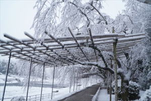 府立植物園の西側、鴨川東岸の堤約700m(北大路橋-北山大橋間)は、「半木の道(なからぎ-の-みち)」と呼ばれている。 ◆歴史年表 現代、1973年、半木の道が完成する。京都鴨川ライオンズクラブ、京都府により、ベニシダレサクラ・ツツジなどが植栽された。 1981年、日本初の太陽エネルギー灯が点された。 2018年、9月、台風21号によりシダレサクラが大きな被害を受ける。 ◆半木の森・半木神社 「なからぎ」とは、道に接している府立植物園内の「半木の森」に由来する。この鎮守の森には、上賀茂神社の末社・半木神社が祀られている。 半木(なからぎ、ながらぎ)は、「なから木」「なかれ木」「流木」などとも呼ばれた。かつては、天太玉命(あめのふとだまのみこと)を祀る「流木神社」があったともいう。西賀茂にかつて「浮田(うきた)の森」があり、鴨川の氾濫により、三座の一つがこの地まで流された。以来、「流木」と呼ばれたともいう。また、この地が上賀茂神社と下鴨神社の中間に位置し、半木と呼ばるようになったともいう。 室町時代後期、応仁・文明の乱(1467-1477)では、付近でも激しい戦いが繰り広げられたという。犠牲者の弔いのために造られた石仏・地蔵などは、安土・桃山時代、1591年の豊臣秀吉によるお土居築造の際に礎として流用されたともいう。 ◆サクラ 半木の道には、現代、1973年から「京都鴨川ライオンズクラブ」(1962)と京都府により、ベニシダレサクラ、ツツジなどが植栽された。請け負ったのは、「植藤」の16代・佐野藤右衛門による。現在では、葵橋-御薗橋間のソメイヨシノ(志波む桜、師範桜)のサクラ並木とつながり、出町柳-上賀茂神社間は、賀茂川沿い約2kmに5000本のサクラ並木が続く。 半木の道では、4月初旬からサクラが開花し、「鴨川茶店」(4月)も催されている。 なお、ライオンズクラブは、鴨川の出雲路橋、御薗橋間のケヤキの植樹(1963)も行っており、現在ではこれらも巨木の並木に成長している。 ◆太陽エネルギー灯 現代、1981年に、半木の道に、日本初の太陽エネルギー灯が点された。 *年号は原則として西暦を、近代以前の月日は旧暦を使用しています。 *参考文献・資料 京都府の説明板、ライオンズクラブの説明板、『親と子の下鴨風土記』 |