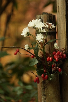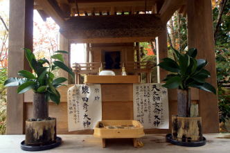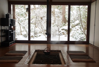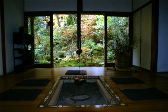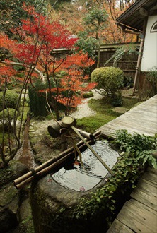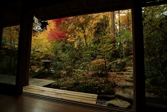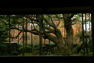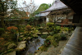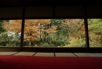 小野山から流れる律川を南にして宝泉院(ほうせん-いん)はある。勝林院の塔頭の一つになる。額縁庭園の庭が知られている。 天台宗、本尊は阿弥陀如来。 京都洛北・森と水の会に加わる。「ミシュラン・グリーンガイド・ジャポン1つ星観光地(五葉の松も1つ星)」(改訂第4版)に選ばれている。 ◆歴史年表 創建の詳細、変遷は不明。 平安時代、仁寿年間(851-854)、円仁が声明専門の寺として創建したともいう。 1012年/寿永年間(1182-1185)、創建されたともいう。大原寺(勝林院)住職の僧坊として、天台声明の道場として開かれた。 江戸時代初期、現在の伽藍が再建されたとみられている。 近代、1868年以降、勝林院の院号は、四坊総称から本堂の呼称になる。4院の内、勝林院の子院として宝泉院、実光院が残った。 ◆円仁 平安時代前期の天台宗の僧・円仁(えんにん、794-864)。男性。姓は壬生、名は円仁、諡号は慈覚大師。下野国(栃木県)の生まれ。9歳で大慈寺の広智に学び、808年、15歳で唐より帰国した比叡山の最澄に師事、その最期まで14年間仕えた。815年、東大寺で具足戒を受ける。比叡山で12年の籠山行に入る。5年後、法隆寺、四天王寺での夏安吾(げあんご)講師、東北への教化を行う。一時心身衰え、829年、横川に隠棲した。苦修練行を続け、夢中に霊薬を得て回復し、『法華経』書写を始め、小塔(如法堂)を建て写経を納めたという。838年、最後の遣唐使として渡り、9年間学ぶ。847年、帰国、仏典、金剛界曼荼羅など多数を持ち帰った。新羅声明を天台声明として取り入れ、その祖になる。848年、比叡山に戻り、円珍に密教を教えた。854年、第3世・天台座主に就く。862年、東塔に天台密教の根本道場・総持院を建立した。東京・瀧泉寺、山形・立石寺(円仁の遺体納葬の入定窟がある)、松島・瑞巌寺など多くの寺を開いた。『顕揚大戒論』ほか、唐滞在記である『入唐求法巡礼行記』(全4巻)を著す。没後、日本初の大師号(慈覚大師)を贈られた。入唐八家(最澄・空海など)の一人。70歳。 円仁は、法華経と密教は同等であり、円密は一致するとし、天台密教(三部密教、胎蔵部、金剛部、蘇悉地部)を確立した。また、浄土教を一乗思想として天台宗に取り入れた。 ◆鳥居 元忠 室町時代後期-安土・桃山時代の武将・鳥居 元忠(とりい-もとただ、1539-1600)。男性。通称は彦右衛門。三河国(愛知県)の生まれ。父・伊賀守忠吉(徳川家康の重臣)の次男。1551年、駿河今川氏の人質になっていた松平竹千代(徳川家康)に仕える。1558年、家康の初陣に従う。1560年、桶狭間の戦、1561年、大高城兵糧入れ、1569年、遠江掛川城攻略、1570年、姉川の戦に加わる。1572年、家督を継ぐ。三方(味方)ヶ原の戦で太股に銃弾を受け片足が不自由になった。1575年、長篠の戦、諏訪原城攻めなど出陣した。長篠の戦で銃弾により負傷したともいう。1582年、天正壬午の乱の戦功により、家康は甲斐国の谷村城主に任じた。1584年、小牧・長久手の戦で甲斐の守りを固めた。1586年、家康に供奉して上洛する。豊臣秀吉の推挙による諸大夫の叙任は、徳川氏臣として固辞した。1590年、小田原の役の武蔵岩槻城攻めで功をたてる。家康の関東入封に伴い、下総国矢作(やはぎ)城主になる。1600年、家康の会津出兵後、伏見城の留守居を命じられる。旧7月25日、五奉行中の石田三成らが家康に対して挙兵した伏見城の戦が始まる。西軍4万の大軍に対し、元忠は1800人の兵力で城に立て籠もる。旧8月1日、13日間の攻防の末、鈴木重朝との一騎打ちにより討死した。また、雑賀孫市に討たれたともいう。首は大坂京橋口に晒された。その際の血染めの床板は、「血天井」として各所に残る。戦は関ヶ原の戦いの前哨戦になった。62歳。 墓は知恩寺・龍見院(左京区)などにある。 ◆建築 山門、玄関、庫裏、客殿、客殿南東に旧玄関、客殿北西に茶室が2つがある。その北東に土蔵がある。 ◈「客殿(書院)」は室町時代後期、1502年の再建とされる。実際には、江戸時代初期の再建といわれている。廊下天井は「血天井」と呼ばれ、安土・桃山時代、1600年、伏見城で自決した鳥居元忠の板間が移された。 ◈「書院」は、大田邸(茨木市)の表書院として、近代、1906年に番匠・太田由太郎により建てられた。現代、2009年より当院に移され再興された。書院の一段上に離れ屋敷(広間)があり、渡り廊下を上段に設け、茶室(小間)に繋ぐ。渡廊下の傍らに、浴室がある。近代、1917年に梨本宮の来訪に際して設けられた。 ◆茶室 茶室「日新庵」は、近代、1905年に建てられた。大阪府茨木市の大田庄次郎が、裏千家・又玅斎(実質的には円能斎)に依頼した。棟梁は高槻の太田某による。現代、2013年に当院に移された。 四畳半、水間、物入、土蔵による。道具蔵と直結されている。離れ屋敷(広間)より渡廊下が水屋に繋がっている。 ◆庭園 ◈「盤桓園(ばんかん-えん)」は、客殿西の庭園をいう。立ち去りがたいの意という。額縁庭園とも称されている。西の庭は、客殿(20畳)の5間の長押間にある柱間、下の腰