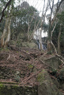 霊鑑寺の脇より、大文字山に向かう急峻な山道を経ると、谷川にある滝の付近、岩山の上に「俊寛僧都忠誠之碑(しゅんかん-そうず-ちゅうせい-の-ひ)」と「副碑」が立つ。 この地に、かつて平安時代末期の僧・俊寛の鹿谷(ししがたに/ししのたに、鹿ヶ谷)山荘があったという。 ◆歴史年表 平安時代、1177年、鹿ヶ谷の俊寛の鹿谷山荘に、俊寛、西光法師、藤原成親、成経親子、平康頼らが集った。密かに平家の横暴に対し謀反計画をたてたという。(『平家物語』巻1) 近代、1935年、西垣精之助により現在地に碑が立てられた。 ◆俊寛 平安時代後期の真言宗の僧・俊寛(しゅんかん、1143?-1179?)。男性。山城(京都府)の生まれ。父・木寺法印寛雅。村上源氏源雅俊の孫。僧都になり、仁安年間(1166-1169)、父を継いで法勝寺執行になる。法勝寺領を管掌し、院関係の仏事を勤めた。1174年、八条院の御堂供養を行う。後白河院(第77代)の近習僧として仕えた。1174年、八条院の御堂供養なども行い、子・俊玄を法橋にした。1177年、平家横暴に抗し、藤原成親、成経父子、西光らと共に平氏打倒計画を企てる。謀議に、京都鹿ヶ谷の山荘を提供する。多田(源)行綱の密告で、平清盛によって捕らわれた。成経、平康頼とともに薩摩国・鬼界ケ島(硫黄島)に配流された。1178年、中宮徳子の御産に伴う大赦で成経、康頼は許され帰京した。俊寛は一人赦されず、その地で没した。(鹿ヶ谷事件)。37歳?。 『平家物語』、能、浄瑠璃、歌舞伎などの題材になった。 ◆有王 平安時代後期の有王(ありおう、 ?-?)。詳細不明。男性。京都で俊寛の侍童として仕えた。1177年、俊寛は鹿ヶ谷事件で薩摩・鬼界ヶ島(硫黄島)に流された。有王は島を訪れ、俊寛の娘の書状を届けた。俊寛は都での妻子の死などを知り、悲嘆のうちに亡くなったという。1179年、有王は俊寛の最期を看取り、遺骨は高野山奥の院に納めた。有王自らは法師になり、諸国を巡り俊寛を弔ったという。(『平家物語』巻3、『源平盛衰記』)。 民俗学者・柳田国男(1875-1962)は、有王を一群の高野聖の通名とし、御生れ(みあれ、神の誕生)と説いた。 ◆俊寛山荘跡 平安時代後期、1177年、俊寛の鹿谷(ししがたに/ししのたに)山荘に、俊寛(1143?-1179?)、西光法師(藤原師光、?-1177)、藤原成親(1138-1177)、成経親子(1156-1202)、平康頼(?-?)ら公家、武士が集った。密かに平家の横暴に対して謀反計画をたてた。時には、後白河法皇(第77代、1127-1192)も御幸したという。当時、平家一門は、官位、所領、荘園などを独占していた。 だが、同志の一人である北面の武士・多田蔵人行綱(ただの-くらうど-ゆきつな)(?-?)により密告された。首謀者の俊寛らは福原より入洛した平清盛(1118-1181)に捕らえられる。この鹿谷山荘事件(鹿ヶ谷の変)により、法皇は鳥羽殿に幽閉される。西光は斬殺、成親も備前に流され惨殺された。俊寛、成経、康頼らは薩摩国鬼界ヶ島(鬼界島、現鹿児島県硫黄島?)へ流された。翌1178年、成経、康頼の二人は赦免される。 首謀者とされた俊寛は、都に還ることもかなわなかった。俊寛の侍童・有王は、島を訪れ、俊寛の娘の手紙を届けたという。俊寛は涙を流し、読み終えて命を終えた。有王は、荼毘に付して遺骨を娘に届けた。娘は尼になり、有王も高野山に上ったという。 話は、『平家物語』、能、歌舞伎、人形浄瑠璃などに描かれている。峰定寺(左京区)には、俊寛と妻子の供養塔がある。この地は妻子が逃れた地という。平康頼の供養塔は双林寺(東山区)にある。 俊寛の山荘の位置については確定していない。鹿ヶ谷の地には、俊寛の所領地があっただけともいう。(『源平盛衰記』)。山荘の持主は、「静賢法印」だったともいう。(『愚管抄』) 霊鑑寺の東方山中には、「俊寛僧都忠誠之碑」が立ち、俊寛の山荘跡とされている。ただ、碑は、近代、1935年に西垣精之助()という人の夢告により立てられている。付近には現在も楼門の滝が落ち、かつて、平安時代中期-室町時代に存在した如意寺楼門に由来して名付けられたと見られている。如意寺の不動堂も建てられていた。霊鑑寺の南の道は「俊寛僧都旧跡道」と呼ばれている。 山荘跡としてほかに、鹿ヶ谷御所の段町の丘陵地(霊願寺東300m)、鹿ヶ谷村東の薮中、徳善谷にある談合谷(現在の碑の南の谷)、山科・安祥寺上の堂の跡地(壇の谷)ともされる。これが後世、「談合の谷」に転訛したともいう。 ◆白旗 第77代・後白河天皇(1127-1192)の院政時代に、戦の際の白旗の起源はあるという。北面の武士として御所警護した平氏は、赤旗を旗印にした。 後白河法皇は、平氏の打倒のために、鹿ヶ谷の陰謀に際し、30本の白旗を授けた。これが、紅白戦の始まりになったという。 ◆鹿ヶ谷 鹿ヶ谷(ししがたに)の鹿(しし)について、本来は「鹿猪(しし)」と書かれた。「しし」は、食用の獣の総称として用いられる。両者は区別され、鹿(かのしし)、猪(いのしし)とも呼ばれた。 鹿ヶ谷の地名由来について、平安時代前期、円珍(814-891)は山中で一頭の鹿に遭遇し