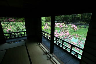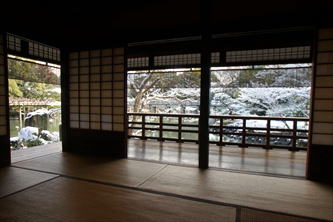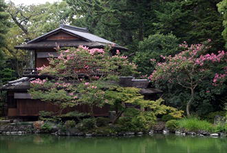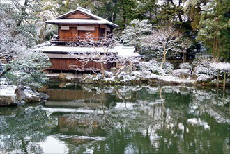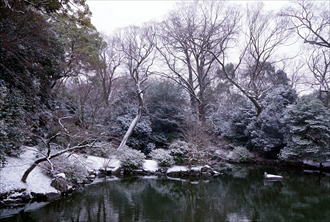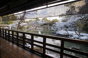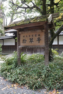 京都御苑内に九条(九條)家の遺構「拾翠亭(しゅうすい-てい)」が建てられている。かつてこの地には、五摂家の一つ、九条家の屋敷があり、別荘として使用されていた。 現在は、拾翠亭と池だけが残されている。九条家の現存唯一、また、現存する貴族の茶室として数少ない遺構とされている。 アメリカ合衆国の日本庭園専門誌"Sukiya Living Magazine, The Journal of Japanese Gardening"の「しおさいプロジェクト」「日本庭園ランキング(数寄屋生活空間)」に、2007年に第23位に選ばれている。 ◆歴史年表 江戸時代、1778年頃、庭園が作庭されたという。 寛政年間(1789-1801)、建物が造立された。 幕末、米総領事・ハリスの通商条約締結要請に対し、開国派の関白・九条尚忠は、その向かい東隣の屋敷にあった攘夷論の太政大臣・鷹司政通と対立した。幕府と朝廷の交渉は尚忠邸で行われた。 1864年、禁門の変では焼失しなかった。 近代、1869年、第122代・明治天皇、最後の藤原氏長者・左大臣・九条道孝は東京に移った。 1878年、勾玉池(九条池)に仮橋が架けられる。 1882年、池に現在の高倉橋が架かる。 ◆九条 兼実 平安時代後期-鎌倉時代前期の政治家・九条 兼実(くじょう-よしみち、1149-1207)。男性。父・摂関家・藤原忠通、母・女房加賀(藤原仲光の娘)。1166年、右大臣になる。1156年、異母姉の皇嘉門院の猶子、1158年、兄・基実の猶子として元服、左近衛権中将、権中納言、左近衛権中将、権大納言・右近衛大将、内大臣を経て、1166年、右大臣に進み、1174年従一位に昇る。1179年、平清盛の権力奪取後、1185年、頼朝内覧の宣旨により、1186年、摂政・藤原氏長者になる。1187年、記録所を設ける。1189年、太政大臣、1190年、娘・任子を入内させ、第82代・後鳥羽天皇中宮になる。1192年、後白河法皇(第77代)没後、頼朝に征夷大将軍を宣下する。だが、1196年、政変により失脚した。弟の天台座主・慈円の後見になり仏教界に影響を及ぼす。息子、妻を亡くし法然へ帰依した。1202年、出家、円証と号した。後法性寺殿、月輪殿と称された。59歳。 和歌に親しみ、藤原俊成・定家らの庇護者になる。40年間の日記『玉葉(ぎょくよう)』がある。 九条家を興した兼実は法性寺に葬られ、墓は東福寺(東山区)内にある。 ◆九条 尚忠 江戸時代後期-近代の公家・九条 尚忠(くじょう-ひさただ、1795-1871)。男性。父・二条治孝、母・信子。九条輔嗣の嗣子。1858年、日米修好通商条約の締結により、1856年、関白として幕府との協調路線をとる。将軍継嗣問題では徳川慶福(家茂)擁立を図る南紀派につく。第121代・孝明天皇、廷臣の不信により、内覧を辞職しのち復職した。1862年、実現した和宮降嫁を進め公武合体に尽力した。攘夷派の糾弾により、1862年、関白・内覧を辞し、岩倉具視らと落飾・重慎に処せられ九条村に閉居した。1867年、免除され還俗を許される。74歳。 ◆九条家 九条家(くじょうけ)は、藤原氏北家の嫡流、五摂家の一つになる。家号は始祖・九条兼実(1149-1207)の九条殿に因む。兼実は関白・藤原忠通(1097-1164)の3男になる。九条の坊名に因み陶化(とうか)ともいう。これは、京都の南東部の九条陶化坊に領地を有していたことによる。 平安時代後期、摂政・関白・氏長者の地位は、藤原道長の子孫・御堂流の嫡流だった。鎌倉幕府を開いた源頼朝(1147-1199)は、兼実を摂政・氏長者に推挙した。以後、九条家は兄・基実(1143-1166)の近衛家と対立し、摂関家は二分される。孫・道家の子・良実(1216-1270)、実経(1223-1284)が、それぞれ五摂家の二条家、一条家を立てた。 安土・桃山時代、豊臣秀吉は、御所南に九条家の領地を移させた。九条家は最盛期に敷地は1万7000坪、建物も3800坪を有したという。 幕末、関白・尚忠(1798-1871)は佐幕派、道孝(1839-1906)は、官軍奥州鎮撫総督に任じられた。近代以降、九条家は公爵になった。道孝四女は、第123代・大正天皇の貞明皇后(九条節子、1884-1951)になっている。 ◆拾翠 「拾翠亭」の「拾翠(しゅうすい)」とは、「緑の草花を拾い集める」の意味があるという。 平安時代、春まだ浅い頃、貴族は待ちきれずに野辺に出て、若菜、草花を摘んだという。その慣わしに因むという。 また「翠」には、鳥のカワセミを意味する。碧い羽を持つカワセミは、「翡翠(翡翆)鳥」「翡翠(翡翆、ひすい)」とも呼ばれた。古くは「翠鳥(そにどり)」などとも称された。かつて勾玉池(九条池)に、カワセミが数多く飛翔していたことから「拾翠」と名付けられたともいう。現在は、マガモ、アオサギなども飛来する。 ◆建築 拾翠亭は、40坪(130㎡)の広さがある。かつて、茶会、歌会などに使用された。 門より飛石を伝い、左に折れる。西面して「玄関」、その東の「控えの間」、北に「広間」、北端に「小間」がある。広間の東と北に池に面して広縁が付く。二階には「座敷」がある。数奇屋風の書院造、二階建。 ◈控えの間 「控えの間」(7畳半)は、玄関の東、広間の南にある。南、東は庭に面しており、二方向に窓が開いている。広間での茶席の際に