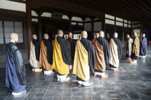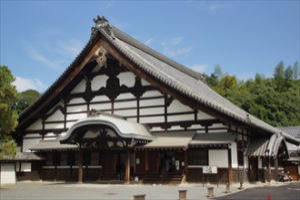 東福寺(とうふく-じ)は、大伽藍が建ち並ぶことから京童の囃子言葉として「東福寺の伽藍面(がらん-づら)」、建物の修復だけでも経費がかさむことから「伽藍貧乏」とも称されてきた。7万坪(23.1㎡)の寺域を有している。 山号を慧日山(えにち-ざん)という。塔頭は、中古以来53あった。現在は25が残る。 臨済宗東福寺派大本山。本尊は釈迦如来(釈迦牟尼仏)。 「ミシュラン・グリーンガイド・ジャポン 2つ星観光地(庭園も2つ星)」(改訂第4版)に選ばれている。「美しき日本-いちどは訪れたい日本の観光遺産」(日本交通公社、1999年)の一つに認定された。 ◆歴史年表 平安時代、924年、この地には、公卿・藤原忠平により建立された藤原氏の氏寺・法性寺(ほっしょうじ)があった。天台宗の寺院で、広大な境内地を有していた。 1006年、公卿・藤原道長は、五大明王像を奉安する五大堂を建立した。現在の塔頭・同聚院の本尊・不動明王像がその中尊という。 1148年/1147年、摂政・藤原忠通は、夫人・宗子とともに最勝金剛院を建立し、阿弥陀像を安置した。その子、関白・九条兼実は、広大な別荘・月輪殿を建て、阿弥陀堂を建立する。 鎌倉時代、1236年、旧4月、摂政関白・九条道家は瑞夢を見て、東福寺伽藍建立の発願(1400言)を行う。(『東福紀年録』)。祖父・兼実(かねざね)の菩提寺として寺を建立し、5尺(1.5m)の釈迦像を安置した。 1239年、旧1月、越中国東条、河口などの保を寺領として施入する。(『吾妻鏡』)。旧8月、仏殿上棟式が行われる。(『百錬抄』)。 1243年、博多・崇福寺の円爾弁円(えんに-べんえん)を請して開山にする。(『東福紀年録』)。東福寺に台密禅の三教を置く。旧8月、法性寺成就宮を東福寺鎮守にする。(『百錬抄』) 1245年、日蓮は弁円と親交があり、伽藍造営に際して東福寺に一木を贈った。 1246年、弁円の住居になる普門院が建立された。当初は、天台、真言、禅の三宗兼学の道場とした。 1249年、大仏の落慶が行われる。 1250年、藤原道家は東福寺の建造物、寺産を処分する。 1252年、旧2月、道家が没し、その子・頼経、一条実経、二条良実に遺志は引き継がれた。 1255年、旧6月、弁円が東福寺を開堂供養する。仏殿の落慶供養会が行われる。(『元亨釈書』)。釈迦像を安置する大仏殿建立には19年間を要した。釈迦如来仏像(15m)は、観音、弥勒菩薩の脇侍とともに「新大仏寺」とも呼ばれ、伽藍は都最大を誇った。中国宗風の七堂伽藍、大日如来などを安置した五重塔、両海曼荼羅、真言八祖を祀った灌頂堂なども建立された。 1258年、仏殿北廊37間を造立する。 1271年、法堂、祖堂、祠堂を起工する。 1273年、法堂、祖堂、祠堂が完成した。 1280年、弁円は東福寺、承天寺、崇福寺、万寿寺の規範8か条を制し、東福寺住持は国師一流に相承にする。聖一派の度弟院になる。旧10月、弁円は東福寺・普門院(常楽院とも)で亡くなる。 1281年、東山照は視篆(してん、儀式)入寺する。無関普門は視篆入寺する。 1283年、弘安年間(1278-1287)とも、功徳院が置かれ、細民救済施薬が行われる。 1288年-1289年、旧2月、応庵、密庵、虎丘、破庵、雪竇の語録が開版された。(東福寺版) 1319年、旧2月、全焼する。(『武家年代記』)。仏殿の釈迦如来坐像、観音・弥勒菩薩立像、四天王立像も焼失した。 1325年、再建のために仏殿が上棟される。 南北朝時代、1334年、京都五山で第3位になった。旧1月、方丈が焼失している。(『皇年代私記』) 1335年、夢窓疎石らは京都五山より除こうとする。 1336年、旧8月、兵火により仮仏殿が焼失した。(『皇年代私記』)。復興が始まる。 1341年、禅堂が再建になる。 1342年、旧4月、将軍・足利尊氏は再び京都五山で第5位とする。 1347年/1346年、旧6月、前関白・一条経道(経通)、幕府の援助により仏殿が上棟、復興される。(『東福紀年録』)。現在の禅堂が再建される。 1351年、南朝は祈願所にした。 1358年、旧9月、将軍・足利義詮は、京都五山の第5位にする。 1365年、功徳院を修繕する。 1370年、幕府は東福寺を京都五山より除こうとするが、性海霊見らの要請により停止になる。 1372年、幕府は禅宗法則条々を定め、東福寺住持は3年、両班は2節で交代になる。また、掛塔僧を600人より350人に減じさせる。 1380年、仏殿と開山堂(常楽庵)を結ぶ橋廊、通天橋が架けられる。普門寺は十刹に列する。 1385年、明兆は「五百羅漢」を描く。 1386年、足利義満による五山評定で京都五山の第4位になる。法堂が再建される。 室町時代、1400年、この頃、荘園不納になり寺勢が衰える。 応永年間(1394-1428)、伽藍修造が行われた。財政逼迫によりその後、中止される。 応永年間(1394-1428)/1405年、現在の三門が造立される。 1406年、僧堂に500人の衆人が集まる。 1408年、明兆が「大涅槃図」を描く。 1425年、現在の三門が建立されたともいう。 1427年、明兆は東福40祖、40幅を描いた。 1428年、法堂の上棟が行われる。 1441年、幕府は寺領安堵し、諸役を免除する。 1442年、塔婆用材を美濃に注文する。 1445年、雲章一慶は塔頭・宝渚庵を