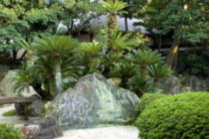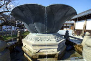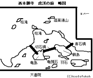 ![]() 虎の間の玄関(国宝) ![]() ![]() ![]() 旧仏飯所 ![]() 大玄関 ![]() 駒繋 ![]() 波の間玄関(国宝) ![]() 波の間玄関、切妻に2羽の鳳凰が彫られている。 ![]() 中央に南能舞台、その背後に対面所・雁の間・菊の間、書院などがある。 ![]() ![]() 「虎渓の庭」 ![]() 「虎渓の庭」 ![]() 「虎渓の庭」、借景として、奥の御影堂屋根を廬山に見立てたという。亀島(中)と鶴島(下)。 ![]() ![]() 北能舞台(国宝) ![]() 北能舞台、鴨川石(なめり石)