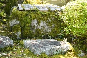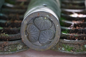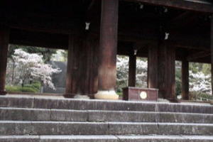 ![]() ![]() ①「鶯張り廊下」。床板には下から金属製の目かすがいの先端が打ち込まれ、かすがいと根太とは和釘2本で留められている。 ![]() ②「忘れ傘」(御影堂の南東庇の梁の間) ![]() ③「三方正面真向(まむき)の猫」 ![]() ![]() ④「抜け雀」(大方丈菊の間) ![]() 解説パネルより ![]() ⑤「白木の棺」(三門)。解説パネルより ![]() ⑥「大杓子」(大方丈入口の梁) ![]() ⑦瓜生石(黒門の西、路上中央)。珪灰石。 ![]() 五輪塔、阿弥陀堂の北にあり、知恩院七不思議の一つともいう。 ![]()