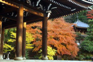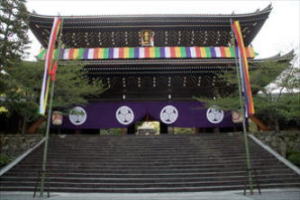 東山三十六峰の一つ華頂山(かちょう-ざん)の麓にある知恩院(ちおん-いん)は、法然が住み、念仏を広めた「吉水の御房」の地になる。かつて徳川家の菩提寺だった。正式には、華頂山大谷寺(おおたにじ/おおたにでら)知恩教院という。浄土宗七大本山の一つ。かつて、浄土宗四本山(ほかに知恩寺、清浄華院、金戒光明寺)の一つ。 浄土宗7000カ寺の総本山、念仏宣布の根本道場になる。本尊は本堂に法然上人像を安置する。 法然上人(圓光大師)二十五霊場第25番。 本山、勢至堂で御朱印(3種類)が授けられる。 「ミシュラン・グリーンガイド・ジャポン1つ星観光地」(改訂第4版)に選ばれている。「京都市のバリアフリー・車椅子の方にもおすすめできる神社・寺院スポット一覧 (10件)」(介護アンテナ)の一つに選ばれている。 ◆歴史年表 平安時代末期、1175年、法然(1133-1212)は、天台宗の比叡山西塔黒谷の住坊を下り、西山、広谷(後の粟生光明寺)の念仏の聖・遊蓮房円照に寄る。(『法然上人絵伝』)。法然は吉水の草庵に移り、専修念仏の道場になる。境内には、中ノ房(大殿付近、二ッ岩禅房)、東ノ房(鐘楼堂付近/小方丈の地、松ノ下禅房、上の坊)、西ノ旧房(三門西南付近、清水禅房、下の坊)があり、法然はおもに中ノ房に30年近く住した。浄土宗が開宗される。(『法然上人絵伝』) 鎌倉時代、1204年、法然は、門弟190余人の署名とともに「七箇条制誡」をしたため、比叡山衆徒の浄土宗への批判をかわす。 1205年、興福寺の貞慶らは「興福寺奏状」を朝廷に提出し、後鳥羽院(第82代)に念仏停止を求める。 1207年、法然は「承元の法難」により、四国・土佐国へ流罪になる。 1211年、旧11月、法然はようやく帰京を赦される。だが、草庵は荒れ果て、青蓮院の慈円僧正により大谷の禅房(勢至堂付近の南禅院)に移る。(『法然上人絵伝』) 1212年、旧1月、法然が亡くなり、門弟・勢観房源智は、法然の遺骸を禅房(現在の勢至堂付近)の東崖に廟堂(現在の御廟付近)を建て葬る。以後、廟堂は高弟・信空(1146-1228)により管理される。命日には知恩講(追善法会)を催した。廟堂は多くの参詣者を集め、貴賤を問わず念仏者の聖地になる。 1227年、旧6月、「嘉禄の法難」では、比叡山の僧徒が専修念仏の停止を訴え、廟堂の破壊が行われる。法然の遺骸を掘り起こし、鴨川に流そうとした。住房なども破壊された。京都守護・北条時氏、内藤西仏らが暴挙を制した。弟子・宇都宮蓮生、千葉法阿らは再来襲をおそれ、秘かに遺骸を粟生(あおう)の地(光明寺)に遷し、荼毘に付されたともいう。(『法然上人絵伝』『百錬(練)抄』)。ついで湛空(が小倉山に雁塔を立てたという。 1234年、法然の弟子・源智は廟堂を修理し、仏殿、御影堂、総門を建立したともいう。「知恩院大谷寺」と名付け法然を開山1世とした。法然の遺骨の一部が移安される。この時、第87代・四条天皇により、総門に「華頂山」、御影堂に「知恩教院」、仏殿に「大谷寺」の勅額を贈られたともいう。(『法然上人絵伝』翼賛)。以後、勅願所になる。 1315年、法然像の版画が知恩院に置かれる。 室町時代、1431年、旧11月、焼失した。(『師郷記』) 1432年、空禅は人別一文あて48万人の勧進を始めた。(「知恩院文書」)。後に将軍・足利義教も勧進に尽力する。 1460年、青蓮院は知恩院敷地山林所領を安堵する。 1468年/1467年、応仁・文明の乱(1467-1477)で西軍の焼払いにより焼失している。(『碧山日録』『後法興院記』)。22世・周誉珠琳は影像を一時、近江伊香立(いかだつ)の新知恩院に避難させる。 1478年頃、住持・珠琳(じゅりん)が朝野の奉加を得て再興した。 1482年、旧地に仏殿、影堂が再興された。新知恩院より什宝が移される。 1488年、青蓮院の尊応は知恩院敷地山林所領、法楽寺無量寿院惣別寮敷地を安堵する。還付された。 1491年、管領・細川政元は寺領を安堵する。 1517年、旧8月、焼失した。影像、勅伝は焼失を免れる。(『宣胤卿記』『後法成寺尚通公記』)。旧10月、梵鐘が再鋳された。(鐘銘)。東福寺の萬寿寺より伽藍を移して阿弥陀堂とする。 1523年、百万遍知恩寺25世・伝誉慶秀らによる別院の動き(本家争い)が起きる。青蓮院の尊鎮法親王の援助により、知恩院に一宗本寺の地位を与えた。浄土宗総本寺になる。 1524年、御忌大会(大永の御忌鳳詔)が始まる。詔勅により、浄土宗総本山になる。 1530年、27世・徳誉光然の時、大谷禅房の旧地に御影堂(現在の勢至堂)が建立された。第105代・後奈良天皇は、「知恩院教院」「大谷寺」の勅額を贈る。 1553年、称念は毎月一夜の不断念仏を始めた。 1560年、足利義輝は一宗本寺の座次公帖を下す。 安土・桃山時代、1573年、15代将軍・足利義昭が織田信長により追放された際に、義昭の二条城に対して信長は、知恩院に陣を敷く。信長は恩謝として白銀、米、寺領を寄せる。(『兼見卿記』)。第106代・正親町天皇により、知恩院は浄土宗本寺と認められる。香衣着用の勅許は、知恩院よりの執奏によるとされた。(「正親町天皇綸旨」)。知恩寺との