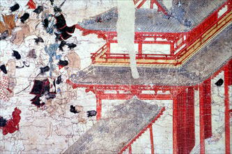 しゅじゃくもん)が建てられていたという。 ◆歴史年表 平安時代、門は、現在地付近に南面して建てられた。当初は「大伴門(おおとももん)」と呼ばれた。 818年、「朱雀門」に改められる。 866年、「伴大納言絵詞」(国宝)に朱雀門が描かれている。 989年、倒壊した。 1007年、藤原道長による金峯山(奈良)参詣では、道長は土御門第より朱雀大路に出て祓を行う。その後、羅城門跡より出立した。 1165年、朱雀門での大祓装束の指図がある。(『山槐記』) 鎌倉時代、1208年、焼失した。 1209年、倒壊し、再建される。 1211年、自然倒壊し、以後、再建されなかった。 1212年、「火出で来て西北に至る。はてには、朱雀門・大極殿・大学寮・民部省などまで移りて」と記されている。(『方丈記』) 1227年、焼失したともいう。 現代、1987年、千本通での埋設管敷設工事にともない立会調査を行う。 1985年、朱雀門北側の立会調査により朱雀門-応天門間の道路が見つかる。 2008年、千本通での埋設管敷設工事にともない立会調査を行う。 2009年、千本通での埋設管敷設工事にともない立会調査を行う。 2011年、朱雀門推定地北西隅で試掘調査を行い、平安時代の土坑1基が見つかる。 2013年、3月、京都市考古資料館により説明板が設置された。 ◆空海 奈良時代-平安時代前期の真言宗の開祖・空海(くうかい、774-835)。男性。弘法大師。讃岐国(香川県)の生まれ。父・豪族の佐伯田公(義通)、母・阿刀氏。788年、15歳で上京し、母方の叔父・阿刀大足に師事し儒学を学ぶ。791年、18歳で大学明経科に入るが、中途で退学し私渡僧(しどそう)として山岳修行を始め四国の大滝岳や室戸崎などで山林修行した。797年、『聾瞽指帰(ろうこしいき)』を著す。798年、槙尾山寺で沙弥となり、教海と称する。804年、東大寺戒壇院で具足戒を受ける。遣唐使留学僧として唐へ渡り、805年、長安・青竜寺の恵果(けいか)により両界、伝法阿闍梨の灌頂を受ける。806年、当初の20年の義務期間を2年に短縮して帰国、多くの経典、密教法具などを持ち帰る。入京できず大宰府・観音寺に住した。809年、入京を許される。810年、高雄山寺(神護寺)を経て、811年、乙訓寺に移り、約1年間任に当たった。別当になる。812年、乙訓寺を訪れた天台宗開祖・最澄は、空海と会っている。その後、空海は高雄山で最澄らに金剛界結界灌頂を行った。後、二人は決裂し、断絶する。813年、東大寺別当、819年頃/818年、高野山を開く。822年、東大寺に灌頂道場(真言院)を開く。823年、東寺を真言密教の道場にした。824年、高雄山寺を神護寺と改名する。神泉苑で祈雨の修法を行う。827年、大僧都となる。828年、綜芸種智院を創立した。832年、高野山で万灯会、834年、正月、宮中中務省で後七日御修法を営む。830年、『秘密曼荼羅十住心論』を著す。高野山で亡くなり東峰に葬られた。62歳。 ◆藤原 道長 平安時代中期-後期の公卿・藤原 道長(ふじわら-の-みちなが、966-1028)。男性。御堂殿、法成寺殿。父・藤原氏北家の関白・太政大臣・藤原兼家、母・藤原中正の娘・時姫の5男。幼少期を東三条殿で過ごした。986年、父・兼家が第66代・一条天皇の摂政になり、987年、従四位から従三位になる。左大臣・源雅信(宇多源氏)の娘・倫子(正妻)と結婚する。988年、左大臣・源高明(醍醐源氏)の娘・明子(本妻)と結婚した。991年、権大納言に任じられる。995年、兄の関白道隆・道兼が相次ぎ疫病により没し、道隆の子・内大臣・伊周(これちか)と後継争いをする。姉・詮子(東三条院)の支援により内覧、右大臣、氏長者になり政権の首座に就く。996年、伊周の失脚により左大臣に昇る。1000年、長女・彰子が一条天皇の中宮として後宮に入り、一帝二后の制を始めた。1005年、祖先供養のために、宇治木幡に法華三昧堂(木幡寺、浄妙寺)を建てる。1012年、2女・妍子(よしこ)を第67代・三条天皇の中宮とした。1016年、彰子が産んだ外孫・敦成親王(第68代・後一条天皇)の即位に際し、道長は1年ほど摂政に就く。1017年、摂政を嫡子・頼通に譲り、実権は握り続ける。従一位、太政大臣になる。皇太子・敦明親王(三条天皇第1皇子)の辞退を図り、彰子の産んだ敦良親王(第69代・後朱雀天皇)を皇太弟とした。1018年、太政大臣を辞した。娘・威子が後一条天皇の中宮、その同母妹・嬉子が皇太弟(後朱雀天皇)の妃になる。道長は「望月の歌」「この世をばわが世とぞ思ふ望月の欠けたることのなしと思へば」(『小右記』)と詠む。1019年、院源を戒師とし出家し、行観(すぐに行覚に改め)と称した。1020年、篤く仏教に帰依し、土御門殿の東に阿弥陀堂(無量寿院)に始まる法成寺(御堂)を造営した。1025年、娘・嬉子が親仁親王(第70代・後冷泉天皇)を産んで亡くなり、1027年、娘・妍子(三条天皇中宮)も相次いで亡くなる。この頃、道長は背中にできた癰(よう)に苦しむ。1028年、最期は、法成寺の九体阿弥陀堂に病床を移し、顔を西方浄土に向けて亡くなる。23年にわたって日記をつけ、後に『御堂関白記』と名付けられた。62歳。 政治家として