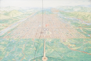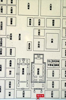 ![]() 「此附近平安京大内裏朱雀門址」の石標 ![]() ![]() 【参照】中央下に鳥羽の作り道、その先に平安京の朱雀大路、「平安宮-京都市建設局・京都市埋蔵文化財調査センター・京都市埋蔵文化財研究所」説明板(二条駅前)より ![]() 大内裏の朱雀門(赤い矢印)、京都市考古資料館の説明板より ![]() 【参照】大内裏復元模型、中央に朱雀大路、その突き当りに朱雀門、その奥に朝堂院がある。(京都市平安京創生館、展示模型より) ![]() 朱雀門は赤い囲み部分、その上に朝堂院、京都市考古資料館の説明板より ![]() ![]() ![]() ![]() 【参照】右京職の一部築地(左)と朱雀大路の側溝(中央)、「平安宮-京都市建設局・京都市埋蔵文化財調査センター・京都市埋蔵文化財研究所」説明板(二条駅前)より) |