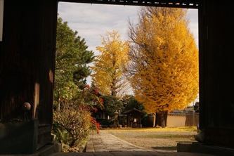 浄福寺通に面して慧光寺(えこう-じ)がある。山号は智照山という。 日蓮宗本圀寺派、本尊は十界曼荼羅。 ◆歴史年表 室町時代、天文年間(1532-1555)、足利義輝の家臣・野本輝久の亡き後、その正室・伊佐が出家し妙法尼と名乗り、菩提を弔うために私邸を草庵とした。寺号は輝久の法号による。開山は日玄による。当初は、須磨町(上京区元伊佐町)にあった。(『山州名跡志』『坊目誌』) その後(年代不詳)、新在家町(上京区)に移る。 安土・桃山時代、天正年間(1573-1592)、現在地(笹屋町)に移った。 ◆野本 輝久 室町時代後期の武将・野本 輝久(のもと-てるひさ、?-1565)。詳細不明。男性。足利義輝の家臣。式部少輔。三好長慶、松永久秀らの義輝暗殺計画に同意しなかったため、1565年、即刻、長慶の家臣に殺害された。 墓は妙恵会総墓所(下京区)にある。 ◆野本 伊佐 室町時代後期の野本 伊佐(のもと-いさ、?-?)。詳細不明。女性。父・久我晴通(こが-はるみち)。足利義輝の家臣・野本輝久の正室。天文年間(1532-1555)、夫亡き後、出家し妙法尼と名乗る。夫の菩提を弔うために私邸を草庵とした。 邸宅は人々に「伊佐殿」と呼ばれた。◆元伊佐町 伊佐殿は町名の由来になり、伊佐町と称される。上京区に元伊佐町(もといさ-ちょう)が残る。 ◆樹木 ◈イチョウの大木がある。 ◈ヤマザクラ(上京区民の誇りの木)がある。 高さ6.50m、枝張10.7m、幹周2.05m。 *年号は原則として西暦を、近代以前の月日は旧暦を使用しています。 *参考文献・資料 『京都大事典』、『京都市の地名』、『京都歴史案内』 、ウェブサイト「コトバンク」 ![]() ![]() ![]() ![]() ![]() |