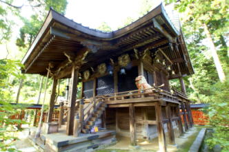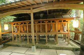 ![]() 右より、十禅師権現、住吉大明神、新羅(しんら)大明神、賀茂大明神、平野大明神、西宮大明神、松尾大明神。新羅神社は、平安時代、924年創建という。 |