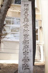 ![]() 敷地東側の「京都所司代跡」の石標 ![]() 敷地東側の「明治天皇行幸所京都府中學阯」の石標 ![]() 敷地北西の「所司代屋敷址」の石標・道標 |