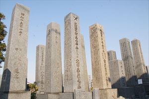 西大谷の墓地に「日支事変 肉弾三勇士之墓(にっしじへん-にくだん-さんゆうし-の-はか)」の巨大な墓が立てられている。 肉弾三勇士(爆弾三勇士)とは、第1次上海事変下で爆死した旧日本陸軍兵士3人をいう。その後、3人は「軍神」として神格化された。 ◆歴史年表 近代、1932年、2月22日、久留米工兵第十八大隊一等兵の江下武二、北川丞、作江伊之助の3人は、上海事変の廟行鎮(びょうこうちん)で爆死した。 1932年、3月8日、三勇士に西本願寺より特別院号が贈られる。光照法王は染筆を贈る。 3月10日 三勇士の遺族が西本願寺の戦死者追弔会に参拝した。 3月12日、院号伝達式が西本願寺の本山真実閣で行われた。 3月29日、西本願寺で三勇士本葬が行われる。 4月26日、遺骨が西大谷本廟に納められた。 6月5日、建立碑の寄付を全末寺に求める。 11月2日、建碑敷地は、西大谷の西川氏墓所の一部に決定した。 1933年、2月23日、西大谷に墓碑が建立される。3月11日、西大谷で建碑の除幕式が行われた。遺族は、1000円の永代経を献納する。4月13日、上海の団が墓参している。 ◆江下武二 近代の陸軍軍人・江下武二(えした-たけじ、1910-1932)。佐賀県生まれ。1931年、久留米工兵第十八大隊に入隊し、工兵隊一等兵になる。1932年、上海事変に出征した。2月22日、廟行鎮で中国軍陣地の鉄条網破壊のために、点火した爆薬破壊筒を抱え突進し爆死した。23歳。 戦死後、伍長に特進した。「爆弾三勇士」の一人。 ◆北川丞 近代の陸軍軍人・北川丞(きたがわ-すすむ、1910-1932)。長崎県出身。1931年、久留米工兵第十八大隊に入隊し、工兵隊一等兵になる。1932年、上海事変に出征し、2月22日、廟行鎮で中国軍陣地の鉄条網に爆薬破壊筒を持ち突入し爆死した。23歳。 戦死後、伍長に特進した。「爆弾三勇士」の一人。 ◆作江伊之助 近代の陸軍軍人・作江伊之助(さくえ-いのすけ、1910-1932) 。長崎県生まれ。久留米工兵第十八大隊一等兵工兵隊一等兵になる。1932年、上海事変に出征し、2月22日、廟行鎮で中国軍陣地の鉄条網に爆薬破壊筒を持ち突入し、負傷し、その後死亡した。23歳。 戦死後、伍長に特進した。「爆弾三勇士」の一人。 ◆内田徳次 近代の陸軍軍人・内田徳次(?-1936)。佐賀県の生まれ。久留米工兵第十八大隊長として、1932年、上海事変に出征し、2月22日、廟行鎮で中国軍陣地の鉄条網に爆薬破壊筒で突入する作戦で、3兵士に破壊筒点火を命じた。一等兵・作江伊之助の救護中に、自らも足を撃たれ負傷した。上海の野戦病院に入院、3月、帰国後、帰郷した。1936年、再び召集され、旧満州で戦死した。 ◆肉弾三勇士 肉弾三勇士は、爆弾三勇士ともいう。 1931年9月に、中国東北部の奉天(現在の瀋陽)郊外にある柳条湖で、南満州鉄道の線路が爆破された。これを機に、現地の日本軍は軍事行動を開始し満州事変の発端になった。(柳条湖事件)。1932年、1月、抗日運動が高まり、日中両軍の衝突事件が起きた。(上海事変)。 第1次上海事変下、1932年2月22日の上海廟行鎮の戦闘で、中国の第一九路軍は廟行鎮(びょうこうちん)に鉄条網を築いて防戦した。日本軍の久留米工兵第十八大隊(大隊長・広瀬勝滋)の攻略は難航した。 小隊台分隊長(破壊隊班長)・内田徳次は、鉄条網爆破による突破を命じた。一等兵の江下武二、北川丞、作江伊之助の3人は、爆薬を装填し点火した破壊筒を抱き突入する。歩兵の突撃路を作るためだった。3人は自爆死し鉄条網を破壊した。 陸軍は3人を「軍神」として顕彰した。新聞も軍事美談として報道する。芝居、映画、歌なども作られた。 その後、1932年3月に、傀儡の満州国建国宣言があり、国際連盟は承認しなかったため日本は脱会する。その後、日本は日中戦争(1937-1945)、太平洋戦争(1941-1945)に突き進んだ。 2015年に内田のメモ(1932)が佐賀県の実家で発見された。2月2日から50日間の出来事を綴った。内田は3人に破壊筒への点火を命じ、鉄条網10mの破壊に成功した。だが、江下、北川が爆死した。内田は負傷した作江の救護中に、右足を撃たれている。その後、内田は上海の野戦病院に入院し、胸の内を「三勇士を思えば泣いてむせぶ」と記している。 2020年に福岡県で3勇士の顔写真、軍服の一部という小さな布切れ、「贈 三勇士被服片 附 記念書」(1932)が発見された。陸軍が記念品として贈ったものという。 ❊原則として年号は西暦を、近代以前の月日は旧暦を使用しています。 ❊参考文献・資料 ウェブサイト「真宗総合研究所研究紀要第12号 戦前の上海における浄土真宗本願寺派開教の足跡-『教海一瀾』と『文化時報』の記事から-」、「毎日新聞 2015年11月15日付」、「朝日新聞 2020年11月10日付 」、「朝日新聞 2021年1月6日付 」ウェブサイト「コトバンク」 |