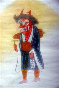 ![]() ![]() ![]() ![]() ![]() ![]() ![]() ![]() 「大津絵の源流 追分絵 追分の絵師もしらじなけさの春 元禄二年(1689年) 和風」の句碑 ![]() 手前が車道、左奥の一段上が人馬道(歩道) ![]() 車石 【参照】牛車、車道の再現図、牛には日除けの菰を被せている。説明パネルより![]() ![]() 【参照】大津絵「鬼の(寒)念仏」、逢坂山の説明板より。 ![]() 【参照】大津絵「鬼の(寒)念仏」 |