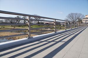 北山通に北山大橋(きたやま-おおはし)が架けられている。 ◆歴史年表 現代、1962年、現在の橋が架橋された。 ◆北山大橋 橋種は鋼橋、3径間連続活荷重合成鋼プレートガーター、橋長84m、幅員 22m/19.6m、路線名は北山通になる。 ❊原則として年号は西暦を、近代以前の月日は旧暦を使用しています。 ❊参考文献・資料 『京都水ものがたり 平安京一二〇〇年を歩く』、京都府京都土木事務所資料、ウェブサイト「京都市橋りょう長寿命化修繕計画 別冊資料 京都市管理橋りょう一覧 、平成28年4月現在」 |