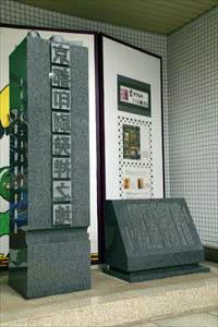 京都市地下鉄烏丸御池駅構内の南改札口から、北改札口へ通じるコンコース階の途中に、「京都印刷発祥之地の記念碑(きょうと-いんさつ-はっしょう-の-ち-の-きねんひ)」が立てられている。 京都初の近代印刷技術による印刷所「京都點林堂(きょうと-てんりんどう)」が付近にあった。 ◆歴史年表 近代、1870年、通詞・技術者・本木昌造は、民間初の活版所(長崎新町)を創設している。 1871年、12月、昌造は、京都に門人・古川種次郎を派遣する。種次郎は京都で「點林堂(てんりんどう)印刷所」を開設した。その後、山鹿善兵衛、その子息らが経営を受け継ぐ。 1875年、春、昌造は関西に出向いた。体調をくずしており、「大阪活版製造所」の谷口黙次(初代)、「京都點林堂」の山鹿善兵衛(栢年)、東京から駆けつけた昌造の門人・平野富二らが介護している。 1888年、「點林堂」の所在地として「上京区(現・中京区)第廿八組烏丸三條北場[塲]之町三十三番戸」と記されている。(「京都府官報」) 1923年、點林堂の50周年に合資組織に改められ、伊東幸祐が代表社員になった。 現代、1970年頃まで、點林堂は存続していたという。 2010年、5月、京都府印刷工業組合により、現在の「京都印刷発祥之地の記念碑」が立てられた。 ◆本木昌造 江戸時代後期-近代の通詞・技術者・本木昌造(もとき-しょうぞう、1824-1875)。字は永久、号は梧窓(ごそう)、点林堂。長崎の生まれ。馬田又次右衛門の子/乙名北島三弥太の4男。1834年/1835年、母の実家・オランダ通詞の本木昌左衛門の養子になり、6代目を継ぐ。西欧技術、印刷、活字製造に興味を持つ。1844年、オランダ使節・コープスが長崎を訪れ、通訳を行う。1848年、通詞仲間・北村元助、品川藤兵衛、楢林量一郎らとオランダより蘭書植字版、印刷機を、買い入れる。日本初の鉛活字輸入になる。1851年、流し込み活字製造を案出した。自著辞書『蘭和通弁』を自ら製作した鉛活字、オランダ輸入の印刷機で印刷した。1853年、小通詞過人になる。ロシア使節・プチャーチンが長崎に来航した際に通訳した。1854年、ロシア使節・プチャーチンの通訳として下田に赴く。軍艦「ディアナ号」が伊豆で地震により難破し、伊豆戸田(へだ)でロシア艦建造(軍艦打建)の検分役になる。代船「ヘダ号」の建造に関係した。この際に、西洋造船術を習得する。1855年、幕府の長崎海軍伝習所が開設され、海軍伝習掛になり通訳を行う。甲比丹ドンケル・キュルシュス、医師・ファン・デン・ブルグに、化学、物理、数学、測量、石炭技術、製鉄学、航海術などを学ぶ。長崎・活字判摺立所の御用係(立方摺立掛)になり、出島オランダ印刷所に勤務した。蘭書を覆刻し、兵学、医学、会話書を印刷刊行する。造船・海運について由緒書を提出する。1857年、活版師・インデルマウルが新製植字の仕法を伝授する。1858年、長男・昌太郎、妻・縫没が亡くなる。1860年、幕府の「長崎飽ノ浦(あくのうら)製鉄所(現・三菱重工長崎造船所)」の御用掛に任命される。1861年、長崎製鉄所で蒸気船「ヴィクトリア号」、「チャールス号」を買い入れ、船長として操縦する。1863年、4月、「チャールス号」で大阪、紀州、7月、「ヴィクトリア号」で小倉へ航行する。1864年、11月、「ヴィクトリア号」で下田を出港し、八丈島で漂流した。1865年、9月、江戸経由で長崎に帰る。1868年、日本初の地方紙「崎陽雑報」を発行する。 木活字と金属活字の混合により印刷した。7月、長崎製鉄所頭取役を命じられる。浜町・築町間に日本初の鉄橋(西ノ浜鉄橋、くろがね橋)を架ける。1869年、学塾「新街私塾」(長崎新町)を開き、維持費を得るために同製鉄所構内に「活版伝習所」(唐通事会所跡)を開く。製鉄局機関伝習方教頭になる。上海からアメリカ合衆国の宣教師・上海美華書館館長・ウィリアム・ガンブル(William Gamble)を迎える。上海美華書館から活字、活字鋳造機、印刷機などを買い付けた。洋式活版印刷技術を初めて導入する。金属活字の鋳造法に学び、母型による鋳造活字(電胎鋳造母型)を完成させた。事業は門下・平野富二によって継承された。1870年、頭取を辞任し、民間初の「新町活版所」を新街私塾内に創設した。校正記号は、外国の方式を勘案し和文向きに作成した。明朝鋳造活字を使用し、『保建大記』を刊行する。大阪・鉄橋(高麗橋)を架ける。3月、「長崎新塾出張大阪活版所」を開設した。(酒井三造・小幡正蔵)。10月、横浜・「活版所」を開設する(陽其二・上原鶴寿)。12月、日本初の日刊新聞「横浜毎日新聞」を発行する。京都で「點林堂印刷所」を開設する。(古川種次郎ほか)。1871年、東京・「活版所支場」(神田)を設置した。(富二)。10月、東京・「小幡活版所」を開業する。1872年、東京・「長崎新塾出張活版製造所」を開設する。(富二)。1873年、東京・「平野活版所」として築地に移転する。(後、1885年、東京築地活版製造所)。52歳。 墓は長崎・大光寺にある。1912年、従五位を追贈される。 1868年、和文用の号数活字の系列を
