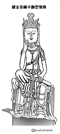 八瀬の妙伝寺(みょうでん-じ、妙傳寺)は、山号を覚法山という。朝廷の慶事に出仕した八瀬童子(やせ-どうじ)の菩提寺になる。 天台宗、本尊は鍍金菩薩半跏思惟像(如意輪観音)になる。 ◆歴史年表 江戸時代、1616年、覚法妙伝により創建された。八瀬童子の菩提寺になる。 現代、1992年、近くにあった念仏堂は老朽化に伴い解体された。堂に安置されていた仏像、位牌が妙伝寺に移された。 2017年、本尊・半跏思惟像は、7世紀に朝鮮半島で作られた仏像・出土品の特徴と一致するとの見解が発表される。 ◆覚法妙伝 江戸時代前期の天台宗の僧・覚法妙伝(?-?)。詳細不明。男性。1616年、八瀬に妙伝寺を創建した。 ◆仏像 ◈本尊の「鍍金菩薩半跏思惟像(ときん-ぼさつ-はんかしい-ぞう)」は、かつて如意輪観音菩薩像とされていた。当寺創建、江戸時代前期の模古作と考えられていた。現代、2017年に、像の様式、金属組成の分析により、朝鮮三国時代、7世紀に朝鮮半島で作られた金銅仏の可能性が高いことが判明した。この頃は、日本に仏教が伝わってまもない時期になる。渡来仏が妙伝寺に伝わった経緯については分かっていない。 像は、思索にふける姿を表している。台座に腰を降ろし、背をやや屈める。右足を曲げ左足の膝頭に載せる。右手は曲げて指先を頬に当てる。左手は組んだ右足を握る。額に水平に刻まれた毛筋、装飾品の精巧な龍の意匠も見られた。 大阪大学の藤岡穰教授、東京国立博物館による蛍光X線分析での金属成分調査が行われた。金属成分は銅90%、錫10%、鉛はほとんど含まれていなかった。日本・中国の仏像に比べ、錫成分が多かった。これらは、7世紀の朝鮮半島で作られた仏像、出土品の特徴と一致した。 像高50.4㎝、座高37㎝、青銅製、大津市歴史博物館寄託。現在、寺には模像が安置されている。 ◈「木造十一面観音立像」(重文、1984年)は、旧念仏堂に伝わる。現代、1992年に、堂は老朽化に伴い解体され妙伝寺に遷されている。作風から、平安時代中期、10世紀末作の遍照寺(右京区)の十一面観音像(重文)に近く、やや先行すると見られている。 等身大で頭はヒノキの一材から彫出し、内刳りはない。頭上面はほぼ当初のまま残され、奥行がある。左右の肩、手首、左臂を矧ぐ。体躯は太造りで、表情は柔和、上唇が突き出た横顔を見せる。衣文の彫りくちには穏やかさがある。着衣に襞の数が多く、装飾性に富む。 京都国立博物館寄託。 ◈「木造天部形(てんぶぎょう)立像」(京都市指定有形文化財、1984年)は、平安時代後期、12世紀作と見られる。 旧念仏堂に安置されていた。1992年に、堂は老朽化に伴い解体され妙伝寺に遷されている。等身大で、穏やかな相貌、身のこなしで、花形の彫り文様の手法などが見られる。 京都国立博物館寄託。 ◈「木造毘沙門天立像」(京都市指定有形文化財、1984年)は、鎌倉時代前期作という。 表情は少年のような面差しで穏やか、気品あり、平安時代後期の様式を基調にする。腰以下は太造りで、裳は動きを見せる。表面各所に細かい部材を加える。作風に鎌倉時代の表現、手法もあり、新旧両様を取り混ぜている。 京都国立博物館寄託。 ◈「木造薬師如来像」(京都市指定有形文化財、1984年)は、鎌倉時代前期の作という。高い肉髻、穏やかな衣文の流れなどに平安時代後期の様風を残す。頭部・体部の接合部にかなりの損傷がある。 ヒノキ材、寄木造、漆箔、彫眼。京都国立博物館寄託。 ◆八瀬童士 八瀬童子(やせ-どうじ)は、京都北方の八瀬里(京都市左京区八瀬)の男性の古称になる。この地は、比叡山延暦寺西麓にあたり、京都側からの登り口になっていた。八瀬童子には「鬼の子孫」との伝承も残り、瓢箪崩山中腹に「鬼洞(おにがほら)」という洞穴もある。八瀬の里人は、古くより杣夫として山林伐採し従事し、京都に対し薪商売を行っていた。 八瀬童子の「童子」とは、本来は寺院内の実務労働する階層の人々をいう。古くこの地は、比叡山延暦寺青蓮房(しょうれんぼう)が支配した。道案内、警護などで寺に貢献し、雑役を免除されていた。平安時代、11世紀には延暦寺青蓮院門跡領八瀬荘(やせのしょう)になる。平安時代末期には、延暦寺に奉仕する一方で、禁裏の警護にも就いた。 南北朝時代、1336年に、足利軍の入京があった。北條氏に追われた第96代・後醍醐天皇(1288-1339)を、八瀬童子が助けたという伝承がある。里人は弓矢を持ち、輿を担いで天皇一行を比叡山へ導いた。天皇は京都を脱出し、吉野で南朝(大和国吉野行宮)を開く。以来、南朝と北朝(山城国平安京)の2つの朝廷が並存する南北朝時代(1336-1392)が続いた。 この時の八瀬童子の天皇への貢献により、13の国名(くにな、「河内」「和泉」「丹後」「但馬」など当初は13、江戸時代には92)が与えられ、諸役免除の特権も得ている。免租の綸旨(りんじ、天皇の意向文書)は第122代・明治天皇の代まで25通が残されている。 特権は以後も引き続き、江戸時代中期には年貢諸役免除になる。天皇の皇居