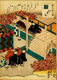 ![]() 源氏物語ゆかりの地の説明板 ![]() 平安宮復元図、赤茶色の建物群は内裏、現在地は赤字部分、源氏物語ゆかりの地の説明板より ![]() 平安時代の釉薬陶器、京都市埋蔵文化財研究所、源氏物語ゆかりの地の説明板より ![]() 『源氏物語』・「紅葉賀」、ROIS-DS人文学オープンデータ共同利用センター  |