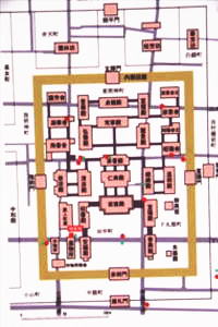 「源氏物語ゆかりの地」の説明板![]() 平安宮復元図、黄土色の四角部分は内裏内郭回廊、現在地は左下の赤字部分、「源氏物語ゆかりの地」の説明板より 平安宮復元図、赤茶色の建物群は内裏、現在地は左下の赤字部分、「源氏物語ゆかりの地」の説明板より 蔵人町屋建物南辺の雨落溝跡、京都市埋蔵文化財研究所、「源氏物語ゆかりの地」の説明板より![]() 【参照】雨落溝跡、石列より上が建物跡、1987年、「平安宮-京都市建設局・京都市埋蔵文化財調査センター・京都市埋蔵文化財研究所」説明板(二条駅前)より ![]() 「蔵人町屋址」の石碑 ![]() 「蔵人町屋址」の石碑 ![]() 『源氏物語』・「横笛」、ROIS-DS人文学オープンデータ共同利用センター |