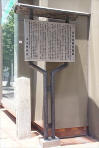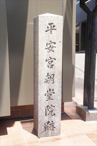 丸太町通千本西入ル北側に、「平安宮 朝堂院跡(へいあんきゅう-ちょうどういん-あと)」の石標が立てられている。 平安時代、この地には朝堂院が置かれた。国家政治の中心地であり、現在の国会議事堂に相当する施設だった。 ◆歴史年表 平安時代、795年、旧8月、「幸朝堂院、観匠作」と記されている。(『日本紀略』) 796年頃、朝堂院は建てられた。 弘仁年間(810-844)頃、八省院とも呼ばれた。 866年、応天門の変で初めて焼失している。 1177年、焼失し、以後再建されなかった。 現代、1971年、下水道工事に伴う立会調査が行われる。 1975年、平安博物館が発掘調査した。 1976年、8月、旧協和銀行千本支店により、新築記念として石標が立てられた。 1984年、京都市埋蔵文化財研究所により千本丸太町上ル小山町で発掘調査が行われる。 1985年、小山町で発掘調査が行われた。 1994年、千本通での試掘・立会調査が行われている。 ◆朝堂院 朝堂院は朱雀門の正面、内裏の南西に位置する。八省(はっしょう)院ともいう。平安京の朱雀大路の延長線上にあり、平安宮の中心に位置していた。現在の千本丸太町交差点北側から旧出世稲荷神社南側までの千本通付近になる。北は中和院、西は豊楽院、東は太政官、民部省などに接した。 794年の遷都後、795年に正殿の大極殿が完成し、796年に朝堂院全体が完成した。弘仁年間(810-844)頃に、八省院とも呼ばれた。866年の応天門の変で、創建後初めて炎上している。放火の嫌疑で伴善男(とも-の-よしお)が失脚した。その後も大極殿まで焼失する火事は3度あり、その度に再建された。平安時代後期、1177年の大火で焼失して以降、再建されなかった。 平安宮では、それまで朝堂院の真北にあった内裏が東へ移されている。朝堂院は分離され、儀式会場的な性格も強まった。朝堂院の規模は東西60/56/64丈(180/170/192m)、南北150/134/163丈(450/406/489m)であり、瓦葺で外周は複廊で囲まれていた。朝集堂は築地で囲まれていた。 南正面に応天門が開き、両翼の東に栖鳳(せいほう)楼、西に翔鸞(しょうらん)楼を構えた。朝堂院は、朝集堂、朝堂、大極殿院の3区域に分かれていた。応天門を潜ると左右に朝集堂があり、朝堂に入る前の待機場所として使用された。会昌(かいしょう)門を入ると朝堂があり、左右対称の十二堂が建ち並んでいた。身分・役所ごとに座る場所が決められており、儀式の際には皇族・大臣以下官人の座になった。朝堂北端には、一段高い龍尾壇(りゅうびだん)があった。その上に、東に蒼龍、西に白虎の2楼が建てられていた。中央に朝堂院正殿である太極殿、その北に小安殿があった。太極殿は、大内裏の正庁であり、即位式、大嘗会、朝賀、外国使節の謁見などの国家的儀礼、国事を行う場だった。 現在の平安神宮(左京区)の拝殿は、大極殿を一回り縮小して復元している。 ◆応天門の変 平安時代前期、866年は、霖雨(りんう、長雨)、旱魃(かんばつ)、飢饉などが続き、怪異、火災、兵乱の兆しも見られるという不穏な年だったという。 旧閏3月10日、夜、応天門より出火し、両廊も焼失した。原因は放火とされた。当初、大臣・藤原良相(ふじわら-の-よしみ)と、大納言・伴善男(とも-の-よしお)は、第52代・嵯峨天皇皇子である左大臣・源信(みなもと-の-まこと)が犯人と告げた。左近衛中将参議・藤原基経(ふじわら-の-もとつね)を経て、その養父・太政大臣・藤原良房(よしふさ)に知らせた。だが、良房は源信を弁護し罰しなかった。 今度は、下級役人の備中権史生(びっちゅうごんのししょう)・大宅鷹取(おおやけ-の-たかとり)が訴え出て、伴善男・中庸(なかつね)父子らが真犯人であるとした。この最中に、善男の従者・生江恒山(いくえ-の-つねやま)、伴清縄(きよただ)が、鷹取の娘を殺害して捕らえられる。二人は、伴父子が源信・源融らの失脚を狙い、放火を共謀したと自白する。伴父子も自白したため、所領、財産没収され、伊豆、隠岐にそれぞれ配流された。そのほかの者も連座して配流になる。(『伴大納言絵巻』) 事件の真相については不明とされる。良房・基経らが、当初は善男らを使って源信を抑えた。その後、台頭著しい善男も罪人に仕立て、放逐した政治的陰謀ともいう。良相、善男が源信の家を包囲したため、良房が探ったともいう。良房は源信を政界より引退させられ、源融は皇位を望むが、基経に潰され河原院に没した。以後、良房は、姪・高子を第56代・清和天皇女御として入内させ、基経を異例の中納言に抜擢した。その後、藤原氏による摂関政治が行われた。藤原氏の暗躍はなかったともいう。 ◆発掘調査 ◈現代、1971年に下水道工事に伴う立会調査が行われた。 朝堂院跡の朝堂十二堂のうち、延禄堂(えんろくどう)の基壇東・西端延石列、修式堂(しゅうしきどう)の基壇北縁延石列(17m)が発見された。 ◈1975年に平安博物館が発掘調査している。 現在地は大極殿の西端、西側回廊付近に当たる。後世の破壊により遺構の発見はできなかった。太極殿に関係すると思