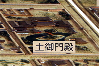 ![]() ![]() ![]() 土御門殿復元図(京都市平安京創生館、展示パネルより) |