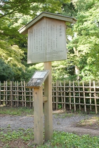 京都御苑内の京都御所北に、「近衛邸跡(このえ-てい-あと)」の木標、駒札が立てられている。 この付近には、五摂家の筆頭だった公卿・近衛家の邸宅があり、池の畔にはサクラが植えられていた。現在も付近はサクラの名所になっている。 ◆歴史年表 詳細は不明。 年代不詳、この付近に近衛邸があった。 江戸時代、1853年、旧10月、篤姫(天璋院)が立ち寄る。 1855年、第121代・孝明天皇は近衛邸を訪れサクラを愛で歌を詠んだ。 近代、1870年、8月、内裏内の公家邸宅地は京都府の管轄になる。 1871年、11月、内裏内の公家町は隣接する町組に分割された。 1877年-1880年、京都御苑内の華族士族などの土地は京都府により買上げられた。 ◆近衛基実 平安時代後期の公卿・近衛基実(このえ-もとざね、1143-1166)。詳細不明。男性。号は六条、中殿(なかどの)など。父・藤原忠通(ただみち)、母・源国信(くにざね)の娘。父・忠通と第77代・後白河天皇の後ろ盾により、1158年、16歳で関白、氏長者になる。左大臣を経て、1165年、摂政になった。24歳。 贈正一位太政大臣。近衛家の祖になる。 ◆近衛基通 平安時代後期-鎌倉時代中期の公卿・近衛基通(このえ-もとみち、1160-1233)。男性。号は近衛殿、普賢寺殿、普賢寺、法名は行理(こうり)。父・摂政・関白・藤原基実(もとざね)の長男、母・藤原忠隆の娘。1166年、7歳で父を失い、基実室の平清盛の娘・盛子(もりこ)の養子になり後見される。1170年、元服、正五位下、1172年、従四位下右中将、1174年、従三位、1176年、従二位になる。1179年、摂政・氏長者の叔父・藤原基房が清盛により解官された。清盛の後援により正二位内大臣・関白になる。1180年、第81代・安徳天皇の摂政になった。清盛の娘を妻にした。1183年、平家の都落ちに同行し引き返す。後白河法皇(第77代)に危急を告げ延暦寺に避難させた。木曾義仲に追われ摂政を辞した。1184年、摂政に復帰する。1185年、壇ノ浦で平家が滅亡し源頼朝が実権を握る。1186年、頼朝の意を受けた九条兼実に摂政・氏長者を代わられ、摂関家は近衛家と九条家に分かれた。後白河法皇は摂関家の所領を基通に留めた。1196年、兼実が失脚し、源通親の後押しにより再び関白に復した。1202年、通親の死後、後鳥羽上皇(第82代)の意向により摂政を辞する。1208年、出家した。74歳。 家名を藤原から近衛に変える。近衛家2代、事実上の祖になる。 ◆近衛家実 平安時代後期-鎌倉時代中期の公卿・近衛家実(このえ-いえざね、1179-1249)男性。。猪隈(熊)殿、法名は円心。父・近衛基通(もとみち)の嫡男。1190年、後白河法皇(第77代)の御所で元服した。1191年、従三位、1204年、左大臣、1206年、摂政、氏長者関白になる。一時を除き、1228年まで摂関だった。1241年、出家する。猪隈殿で没した。日記『猪隈(いのくま)関白記』。64歳。 従一位。第83代・土御門天皇、第84代・順徳天皇、第86代・後堀河天皇の3天皇の摂政・関白になった。近衛家3代になる。 ◆近衛兼経 鎌倉時代前期-中期の公卿・近衛兼経(このえ-かねつね、1210-1259)。男性。号は岡屋、岡屋関白殿。父・摂政・関白家実の3男、母・源雅頼(実は藤原季定)の娘。1222年、元服し禁色昇殿を許され、正五位下侍従として出仕した。中納言、大納言、内大臣、1227年、右大臣を経て、1235年、左大臣になる。九条道家は近衛家との融和のため、1237年、道家の娘・仁子を兼経の妻とし摂政を譲る。氏長者になる。1240年、太政大臣になった。1242年、兼経は関白になる。第88代・後嵯峨天皇の即位により関白を辞した。1246年、前将軍・九条頼経の陰謀発覚により九条家が失脚し、1247年、再び摂政になる。1252年、摂政を弟・兼平に譲り、鷹司第・財産を分与した。その子孫は鷹司家になる。晩年、宇治の岡屋殿に住む。日記『岡屋関白記』。50歳。 従一位。近衛・九条両家の不和を解消した。近衛家4代になる。 ◆近衛宰子 鎌倉時代中期の公卿・近衛宰子(このえ-さいし、1241-?)。女性。父・近衛兼経。1260年、幕府執権・北条時頼の猶子として鎌倉に入り、鎌倉幕府6代将軍・宗尊(むねたか)親王の正室になり、御息所と呼ばれた。1264年、惟康王を産む。1265年、倫子(りんし)女王を産んだ。1266年、宰子と護持僧・良基との密通事件が露見した。良基は宰子出産の際の験者を務めた。同年、宗尊親王は将軍職を追われ帰洛する。幕府は3歳の惟康王を7代将軍として擁立する。その後、宰子は娘を連れて都に戻った。 娘・掄子女王は、第91代・後宇多天皇の側室になり、1039年、禖子(ばいし)内親王を産んでいる。 ◆近衛道嗣 鎌倉時代後期-南北朝時代の公卿・近衛道嗣(このえ-みちつぐ、1332-1387)。詳細不明。男性。号は後深心院。父・近衛基嗣(もとつぐ)、母・家女房。1338年、従三位、その後、内大臣、左右大臣を経て、1361年、関白、氏長者になる。日記『愚管記(ぐかんき)』。55歳。 北朝に仕えた。近衛家9代になる。 ◆近衛経忠 鎌倉時代後期-南北朝時代の公卿・近衛経忠(このえ-つねただ、1302-1352)。男性。号は堀河院、通称は堀河関白。父・近