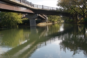 伏見の濠川(ごうかわ)に架橋された伏見であい橋西詰付近に、「角倉了以水利紀功碑(すみのくら-りょうい-すいり-きこう-ひ)」が立てられている。 江戸時代に、高瀬川開削をした角倉了以の功績を顕彰するために立てられてた。 ◆歴史年表 江戸時代、1611年、角倉了以により高瀬川開削が起工される。 1614年、旧8月、了以が亡くなる。秋、子・素庵が引き継ぎ高瀬川は完成した。 近代、1899年、12月、運漕業者有志により碑が建立される。 ◆角倉 了以 室町時代後期-江戸時代前期の海外貿易家・豪商・土木事業家・角倉 了以(すみのくら-りょうい、1554-1614)。男性。与七、諱は光好、法号は了以。京都嵯峨の生まれ。父・土豪(高利貸)・医者・吉田宗桂(そうけい)、母・中村氏の娘の長男。父は勘合貿易により薬も扱った。了以は算数・地理を父に学び、角倉家5代として家業を引き継ぐ。1592年、豊臣秀吉から朱印状を与えられた。1604年以降、徳川氏から朱印状を与えられた。1603年-1613年、弟・宗恂、長男・与一(素庵)らの協力により、安南国(ベトナム)のトンキン(東京)との御朱印船(角倉船、400人乗り、800t)貿易により富を得る。1606年、豊臣秀吉の命により、大堰川開削(丹波-山城)を行う。保津峡に船を渡し、亀岡と京都間の木材輸送を拓く。安南貿易により得た火薬を工事に用いたという。通舟料を得て莫大な利益を得る。1608年、幕府の命により、富士川(駿河岩淵-甲府)疏通を完成させる。同年、天竜川(遠江掛塚-信濃諏訪)開疏は失敗した。1609年以降、貿易は子・与一に譲る。1610年、方広寺大仏殿造営の材木運搬のために、鴨川開削(水路化)を行う。1611年-1614年、高瀬川(京都二条-伏見)開削を行う。二尊院の道空に師事し仏道を極めた。晩年、大悲閣(西京区)に隠棲し、開削川の通船の便益を念じたという。 薬物の輸入に尽力した。土木工事の技術に長けた。琵琶湖疏水(勢多-宇治)計画では、舟行、新田開発の腹案もあった。角倉家は河川通船支配権、倉庫料徴収での特許を得て有力材木商になる。京の三長者(ほかに、後藤四郎兵衛家、茶屋四郎次郎)の一人といわれた。61歳。 墓は二尊院(右京区)にある。 ◆角倉 素庵 安土・桃山時代-江戸時代前期の豪商・文化人・角倉 素庵(すみのくら-そあん、1571-1632)。男性。名は光昌、玄之(はるゆき)、字は子元、通称は与一、別号に貞順・三素庵。父・角倉了以、母・吉田栄可の娘の長男。父の朱印船貿易、河川開発事業を継承した。1588年、藤原惺窩より儒学を学ぶ。後に林羅山を知り、二人を引き合わせる。本阿弥光悦より書を習う。後に「寛永の三筆」の一人とされた。1599年、『史記』の刊行以降、1601年頃まで、光悦の協力を得て嵯峨本を刊行する。1603年から、父・了以の安南国東京(インドシナ半島)との朱印船貿易に関わり、日本国回易大使司を称し、角倉船を海外派遣した。父の大堰川、富士川、天竜川の開削、鴨川水道、高瀬川の運河工事を補佐した。1606年-1609年、甲斐、伊豆鉱山の巡視、1614年-1615年、大坂の陣で船便による物資運搬に貢献した。1615年、幕府より高瀬船、淀川過書船支配を命じられ、山城の代官職に就く。1627年、隠棲した。61歳。 歌、茶の湯、書は角倉流(嵯峨流)を創始した。近世の能書家の五人の一人になる。 墓は化野念仏寺(右京区)、二尊院(右京区)にもある。 ◆高瀬川 高瀬川(たかせがわ)は、江戸時代前期、1611年に方広寺大仏殿の再建の際に、徳川幕府の認可を受け資材運搬のために起工した。輸送には高瀬舟が用いられ高瀬川と呼ばれる。角倉了以が手掛けたことから「角倉川」とも称された。なお、伏見区以南は「東高瀬川」、そのうち、伏見区景勝町で琵琶湖疏水と合流してからは「新高瀬川」という。 了以は、用地の買収費を負担し、運河開削のために買収した土地から得られていた年貢も肩代わりし負担したという。1614年旧8月に、了以は亡くなる。その後、子・素庵に開削事業は引き継がれ、同年秋に完成した。 流路は、二条大橋西畔から鴨川の水を引き入れ、鴨川西岸を南流する。中京区、下京区を経て、南区東九条柳下町で鴨川に一端合流する。その後、東山区福稲(ふくいな)南西部から鴨川東岸を南流し、伏見区市街地西部を流れ、伏見区横大路下三栖東ノ口で宇治川に流入する。 高瀬川が開かれてから、京都、伏見、大坂間の水運による物資輸送に利用された。川は平坦な水路であり、水量も調節できたため容易に運漕することができた。 川幅7m、全長10km。開削費用7万5000両。 ◆濠川 濠川(ほりかわ)は、安土・桃山時代、1594年に豊臣秀吉(1536-1598)による伏見城築城、城下町造成に伴い外堀として開削された。建築資材の運搬に利用されている。このため「ほり」とも呼ばれた。江戸時以降-明治期(1868-1912)まで水運として利用されている。 流路は、伏見区堀詰町から南下し、市内を流れ、葭島金井戸町(よしじま-かないど-ちょう)で宇治川に流入した。 。近代になり琵琶湖疏水に繋がれ、三栖閘門(みすこうもん)から宇治川に流入している。 