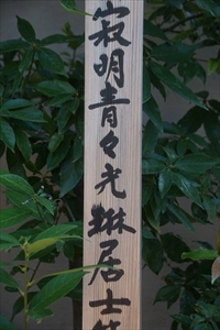 ![]() ![]() ![]() 尾形光琳顕彰碑 ![]() 「法橋光琳」と朱色の落款 ![]() 「寂明青々光琳」、卒塔婆 ![]() 「今年竹まこと真緑 光琳忌」鈴鹿野風呂(1887-1971) |