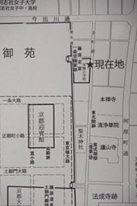 ![]() 「此附近 藤原定家一条京極第跡」の石標 ![]() ![]() 説明板 ![]() 星印が現在地、左が京都御苑、説明板より ![]() 【参照】京極小学校 ![]() 【参照】京極小学校 ![]() 【参照】京極小学校 |