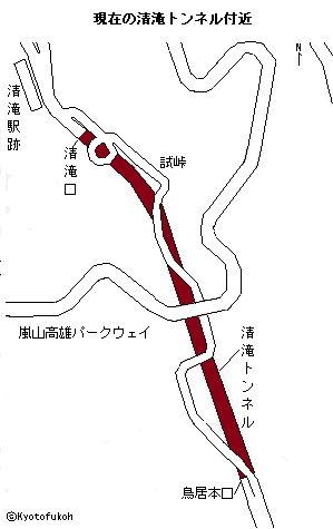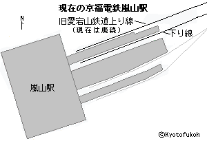 ![]() 平坦線(愛宕念仏寺付近)、嵯峨鳥居本町並み保存館の説明板より ![]() ![]() 現在の京福電鉄嵐山駅、旧愛宕山鉄道のプラットホーム ![]() 京福電鉄嵐山駅 ![]() ![]() 「左 釈迦堂愛宕電車方面」の道標、府道29号線と竹林の小径の交差点 ![]() ![]() 現在の嵐山高架道路 ![]() ![]() 1930年の嵯峨鳥居本町(左)・愛宕山鉄道(右)、嵯峨鳥居本町並み保存館の模型(3.5m×1m、縮尺1/200)より ![]() 清滝道の標識 ![]() 現在の清滝道、旧平坦線の軌道敷 ![]() 旧平坦線の擁壁 ![]() 旧平坦線の擁壁 ![]() 旧平坦線の架線柱跡 ![]() 鳥居本駅近くの平坦線の旧橋梁跡 ![]() 上の鳥居本駅と愛宕参道との旧連絡階段 ![]() 現在の清滝トンネル、旧平坦線の隧道跡 ![]() 清滝トンネル内 ![]() 清滝トンネル内、金具 ![]() 清滝トンネル内、作業用待避坑 ![]() ![]() ![]() 現在の京都バス停、旧清滝駅跡 ![]() 旧清滝駅跡、旧レールの再利用 ![]() 旧清滝駅跡、関連の構造物 |