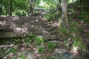 ![]() 清滝川駅跡、石垣 ![]() 清滝川駅跡、石段 ![]() 清滝川駅跡、プラットホーム跡 ![]() 清滝川駅跡、架線柱の土台跡