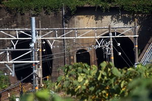 ![]() 西坑口 ![]() 西坑口 ![]() 西坑口、上り外線(左端)・上り内線 ![]() 西坑口、上り外線 ![]() 西坑口、下り内線 ![]() 西坑口、下り外線の坑口延伸部 ![]() ![]() 参考資料:ウェブサイト「わが国における鉄道トンネルの沿革と現状(第3報)-土木史研究 第10号」 ![]() ![]() 西坑口 ![]() 東坑口・坑門、上り外線(右)・上り内線 ![]() 東坑口・坑門、要石 ![]() 東坑口・坑門 ![]() 東坑口・坑門、上り外線の「山紫水明」の石額 ![]() 東坑口・坑門、上り内線の「古今相照」の石額 ![]() 東坑門、上り外線(右)・上り内線 ![]() 東坑口、下り内線 ![]() 東坑口、下り外線の側面 東海道本線下り外線を通過する列車 |