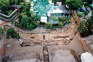 ![]() 「法勝寺八角九重塔と石材」の説明板 ![]() 基壇石材(布石) ![]() 基壇石材の端部分 ![]() 噴水池中の基壇石材(布石) ![]() 「法勝寺九重塔跡」石標、噴水池の東 ![]() 【参照】発掘現場、観覧車の南、八角形土壇の南半部がえている。 ![]() 観覧車、遺跡は埋め戻されている。 ![]() 軒丸瓦、イーストギャラリー展示品より ![]() 軒平瓦、イーストギャラリー展示品より ![]() 【参照】かつて存在した塔の壇(八角九重塔の土壇)、イーストギャラリー展示パネルより 参考資料:イーストギャラリー展示パネル![]() 参考資料:法勝寺八角九重塔跡発掘調査現地説明会資料 ![]() 【参照】法勝寺境内復元図、イーストギャラリー展示パネルより ![]() 【参照】八角九重塔の復元図(作成・竹川浩平)、イーストギャラリー展示パネルより ![]() 【参照】六勝寺、法勝寺復元図、法勝寺は右端になる。八角九重塔・池も見える。(京都市平安京創生館、展示パネルより) ![]() 【参照】法勝寺復元模型(京都市平安京創生館、展示模型より) ![]() 【参照】法勝寺の八角九重塔の復元模型(京都市平安京創生館、展示模型より) ![]() 【参照】法勝寺の八角九重塔(瓦葺)の2011年(左)・1994年の立面復元図(京都市平安京創生館、説明板より) ![]() 【参照】塔の高さ比較。左端は法勝寺の八角九重塔(81m)、中央は現存する東寺の五重塔(56m)、右端は現存する醍醐寺の五重塔(42m)。(京都市平安京創生館、説明板より) |