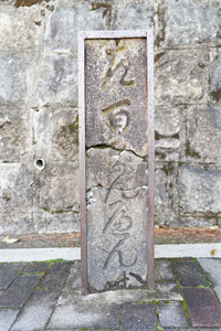 東一条の交差点北東角に「坂本・唐崎・白川道(さかもと・からさき・しらかわみち)」道標(どうひょう)はある。かつてあった白川道沿いに立てられていた。 「吉田本町(よしだ-ほんまち)道標」とも呼ばれている。 ◆歴史年表 江戸時代、1709年、道標は沢村道範により白川道沿いに立てられた。 1863年、旧10月頃、尾張藩は百万遍知恩寺南側の土地(現・京都大学本部構内一部)を購入し藩屋敷を造営した。このため、白川道は廃絶している。 近代、1889年、旧藩屋敷跡に大阪から第三高等中学校(後の第三高等学校)が移転する 。 現代、1987年、5月1日、道標は京都市指定・登録文化財に指定される。 ◆沢村 道範 江戸時代前期-中期の大富豪・沢村 道範(さわむら-どうはん、17世紀末-18世紀初頭)。詳細不明。男性。京都・吉田界隈に住したという。大富豪であり、洛東・東海道筋に多くの道標を立てたという。 京都周辺では、江戸時代前期に「伏見・六地蔵道標」(1703年[元禄16年]) 、「今熊野観音道道標」(1705年[宝永2年])、「五条別れ道標(三条通/五条橋道標)」(1707年[宝永4年]) 、「坂本・唐崎・白川道道標(吉田本町道標)」(1709年[宝永6年]) などがある。 ◆道標 「坂本・唐崎・白川道(さかもと・からさき・しらかわみち)」道標(高さ83㎝)は、江戸時代前期、1709年に、沢村道範により立てられた。 道標は「みちしるべ」とも呼ばれ、現在地から目的地への方向・距離・目的地への経由などの行先・距離が刻まれた石柱状のものだった。街道の分かれ道などに立てられていた。 碑文には、南面に「右 さかもと からさき 白川(乃道)」、西面に「左 百まんへん(乃道)」、北面に「沢村道(範)」、東面に「宝永六年(1709年)己丑十一月 日」と刻まれている。 「さかもと」とは坂本、「からさき」は唐崎で、いずれも西江州(滋賀県)を示していた。「白川道」は、白川街道であり、志賀越道とも呼ばれ、京都と滋賀を結んだ。荒神口(上京区)から東一条、現在の京都大学本部構内を南西から北東に斜めに抜け、北白川(北白川道標)を経て、比叡山を越える山中峠に至る。江戸時代後期、1863年に、尾州(愛知県・岐阜県)屋敷が置かれ、白川道は廃絶した。 ◆尾張藩 江戸時代後期、1863年旧10月頃、尾張藩は、百万遍知恩寺(左京区)の南側の土地を購入し、藩屋敷(3 万3000坪[10万9090.9㎡])を造営した。 現在の京都大学本部構内(左京区)の6割に当たり、南北・西端の位置は現在の構内とほぼ重なる。東端は時計台の東側付近とみられている。藩屋敷の建設により、百万遍知恩寺(左京区)は南側の正門から南に延びていた参道が廃絶された。白川道も廃される。 近代、1889年には、旧藩屋敷跡に大阪から第三高等中学校(後の第三高等学校)が移転してきた 。現在の構内西端(東大路通沿)の南北方向に築かれた石垣は、伝承として旧屋敷の石垣遺構とされた。ただ、近代、1928年1月に市電が熊野神社前から百万遍まで延伸開通した際に、東一条以北の道路拡充工事に伴い新たに築造された石垣ともいう。 ❊年号は原則として西暦を、近代以前の月日は旧暦を使用しています。 ❊参考文献・資料 ウェブサイト「京都のいしぶみデータベース-京都市」、『京都の道標』、ウェブサイト「会報№48-京都市文化観光示現保存財団」、ウェブサイト「京都市指定・登録文化財-史跡-京都市」、ウェブサイト「京都大学文書館だより第37号 2019.10.31」 |