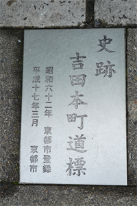 ![]() 「坂本・唐崎・白川道」道標 ![]() 「史跡吉田本町道標」のプレート ![]() 西面「左 百まんへん(乃道)」 ![]() 南面「右 さかもと からさき 白川(乃道)」 ![]() 北面「沢村道(範)」 ![]() 東面「宝永六年己丑十一月 日」 ![]() ![]() 【参照】東大路通の石垣 |