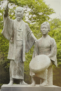 ![]() 銘板「梁川星巌と紅蘭の寓居跡」 ![]() 夫妻の銅像がある曽根城公園(岐阜県大垣市)の写真、銘板より |