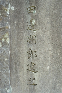 琵琶湖疏水の蹴上船溜近くに、「琵琶湖疏水工事殉難者碑(びわこそすい-こうじ-じゅんなんしゃ-ひ)」が立てられている。 碑は、琵琶湖疏水工事(1885-1890)の犠牲者17人の慰霊のために、田邊朔郎が私費で建立した。 ◆歴史年表 近代、1890年、4月24日、殉職者17人の追悼法会が執り行われた。 1902年、5月18日、田邊朔郎は私費を投じ殉難者碑を建立し、竣工式が挙行される。 1919年、12月、京都市制施行・第一疏水開通30年記念式典に際し、田邊は碑を京都市へ寄贈した。 ◆田邊 朔郎 江戸時代後期-近代の土木工学者・田邊 朔郎(たなべ-さくろう、1861-1944)。男性。江戸の生まれ。父・洋式砲術家・田邊孫次郎の長男。1861年、朔郎が9カ月の時、父が病死する。その後、生活困窮する。1868年、戊辰戦争を逃れ武州幸手に移る。1869年、叔父・太一のもとに移る。1871年、太一が外務省任官になりその援助を受けた。1874年、東京に戻り、湯島天神下の「共慣義塾」で英語、漢学、数学を学んだ。1875年、工学寮付属小学校に入学した。1877年、工部大学普通科に入学する。2年後、私費生として工部大学校土木科(東京大学工学部の前身)で学ぶ。1881年以来、京都での実地調査に基づく、実地科卒業論文「琵琶湖疏水工事の計画」を執筆した。土質調査の際に右手を負傷し、左手だけで製図、測量して書いている。叔父の破産後、借金して学業を続け、1883年、工部大学校を卒業した。卒論が京都府知事・北垣国道の目に留まる。請われて京都府疏水准判御用掛として採用され、琵琶湖疏水工事に従事する。1885年、疏水事務所の工事担当として疏水工事が着工した。1886年、疏水事務所の工事部長になる。1887年、工師として全体責任者になった。1888年-1889年、アメリカ合衆国に出張し、水力配置法の取調、ポトマック運河、モリス運河、リン市電気鉄道の調査を行う。1890年、琵琶湖疏水が完成する。疏水工事概要を作成した。国道の長女・しずと結婚した。媒酌人は榎本武揚だった。帝国大学工科大学教授に就任した。1891年、蹴上発電所が完成する。工学博士を授与される。1892年、震災予防調査会委員に任じられる。疏水工事報告書について英国土木学会より、テルフォード・メダルを授与される。1893年、内務省土木会委員に任じられた。1894年、義父・国道の依頼により北海道に出張し、北海道鉄道敷設のための調査を行う。1896年、東京帝大を退任し、北海道庁鉄道部長として官設鉄道の計画・建設にあたる。1897年、臨時北海道鉄道敷設事務調査嘱託に任命された。1898年、北海道鉄道部長に任命され、北海道に移る。1900年、ロシア・シベリア鉄道工事を視察した。アメリカ合衆国を訪ねる。鉄道部長を辞し、創設された京都帝国大学理工科教授に就任した。1901年、京都市土木顧問を兼務し、市の三大事業計画を推進する。1910年、京都帝国大学教授に就任した。京都市名誉顧問になる。1916年-1823年、京都帝国大学工科大学長に就任した。1923年、土木学会会長に就任する。1924年、京大名誉教授になる。勲一等瑞宝章を受章した。1929年、東京・万国工業会議副議長、土木文化会議委員長に推された。1938年、京都市から有功者として表彰された。 米国鉄道協会会委員、アメリカ合衆国土木会会員になる。編纂委員長として『明治工業紙』(全10巻)(1925-1931)に関わる。著『明治以前日本土木史』(1936)は日本土木史の基本文献になっている。81歳。 詩歌、漢詩文、書画、琴を嗜み、工事関連の石片を蒐集した。 墓は大日山墓地にある。顕彰碑(京都市長寄付の黒御影石)には「希英魂永留本市」と刻まれている。傍らに夫人・静子の墓もある。立像が疏水公園内に立つ。 ◆谷 鉄臣 江戸時代後期-近代の武士・官吏・谷 鉄臣( たに-てつおみ、1822-1905)。詳細不明。男性。旧姓は渋谷。初名は退一、字は百錬、通称は騮太郎、号は太湖・如意山人。近江(滋賀県)彦根の生まれ。父・殿医・渋谷家の長男。17歳-27歳、江戸、東北、越後、長崎で儒学・蘭方を学ぶ。父病のため家業をつぐ。滋賀初という種痘の技法を広めた。1860年、井伊直弼の暗殺後、1863年、彦根藩士にとりたてられた。家老・岡本半介に認められ、騮太郎ら3人は藩の外交係として、伊藤博文・井上馨・谷干城らと度々面会した。1868年、維新後に新政府の左院一等議官・宮内省京都支庁御用掛になる。後に官を辞し、京都に移る。従四位勲四等。84歳。 ◆巌本 琴城 近代の漢学者・巌本 琴城(いわもと-きんじょう、?-1903)。詳細不明。男性。名は範治。評論家・女子教育者・巌本善治の養父。もと因幡鳥取藩士だった。1881年、京都で古学の塾を開く。賀陽宮邦憲(かやのみや-くにのり)王の書の師だった。 ◆殉難者碑 近代、1890年4月9日に第一疏水竣工式の後、24日に、南禅寺本堂で琵琶湖疏水工事の殉職者17人の追悼法会が執り行われている。京都府知事・北垣国道ら議員80人が列席した。 1902年5月18日に、主任技師・田邊朔郎は私費を投じ殉難者碑を建立し、この日に竣工式が挙行された。1919年12月に京都市制施行