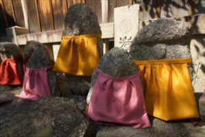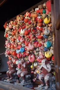 八坂の塔の西にある八坂金剛寺(やさか-こんごう-じ)は、大黒山延命院(だいこくさん-えんみょう-いん)と号する。「八坂庚申堂(やさか-こうしんどう)」「八坂庚申」「庚申(こうしん)さん」ともいわれる。 天台宗、本尊は「庚申さん」(青面金剛 [しょうめんこんごう] 童子)。 日本三庚申(ほかに、大阪四天王寺・庚申堂、かつてあった東京入谷 [いりや] ・庚申堂)の一つ。庚申信仰発祥の地とされている。京洛三庚申(ほかに、山ノ内庚申堂、粟田口庚申堂 [尊勝院] )の一つ。 所願成就、病気平癒、無病息災、災難除け、タレコ(下の世話)封じ、縁結び、学業成就、商売繁盛などの信仰を集める。金運のお守りが授けられる。指猿は手芸上達の祈願の信仰がある。 ◆歴史年表 創建、変遷の詳細は不明。 飛鳥時代、本尊は、渡来系秦氏の族長・秦河勝(?-?)が渡来した際に持参した仏像であり、秦氏の守り本尊として祀られたものという。 平安時代、秦氏滅亡の際に、浄蔵貴所(887-946、じょうぞう-きしょ)により建立されたという。法観寺の住職だった浄蔵貴所は、金剛寺に住んだともいわれる。 江戸時代、1678年、現在の本堂が再建されている。 ◆浄蔵貴所 平安時代前期-中期の天台宗の僧・浄蔵貴所(じょうじょう-きしょ、887-946)。男性。浄蔵。京都の生まれ。父・諌議太夫殿中監・文章博士・三善清行の第8子、母・第52代・嵯峨天皇の孫ともいう。4歳で千字文を読み、7歳で父を説得し仏門に帰し、熊野、金峯山などで苦行を積んだという。902年、12歳で宇多法皇(第91代)に会い、弟子になる。清涼房玄昭のもとで受戒し、三部大宝などを受け、大恵大法師に悉曇(しったん)の音韻を習得する。909年、菅原道真の怨霊に苦しむ藤原時平を護持祈念し、2匹の青竜が時平の左右の耳から頭を出したという。19歳で、比叡山横川に籠り、毎日法華六部誦経、毎夜六千反礼拝を行う。940年、横川首楞厳院で平将門降伏の祈禱を修し、誅滅(ちゅうめつ、罪人を攻め滅ぼす)を予言した。八坂庚申堂(金剛寺)を建立し、948年、五重塔が西に傾き、験力を持つという東隣の雲居寺・浄蔵の加持により元に戻したという。(『元亨釈意』)。952年、浄蔵の加持祈祷後、子の刻(午前零時)、乾(北西)の微風により五重塔と宝鉾が動き、唸り、大地が揺らぎ、元に戻ったという。(『大法師浄蔵伝』)。寺に入った賊十数人を大声で一喝し失神させ、その罪を諭したという。964年、雲居寺で亡くなり、西向きに正念したという。 密教 顕密、悉曇(しったん、梵語・梵字)、天文、医学、卜筮(ぼくぜい、占い)、管弦、文章、技芸に通じたという。各所で呪力を発揮し、予言と奇跡を起こした。そのため、天皇から庶民にいたるまで、神人、生き仏として尊んだという。死んだ父を蘇生させ、堀川の一条戻橋の名の由来になったという。祇園祭の山鉾・山伏山の人形は浄蔵がモデルといわれている。著『胎蔵界浄蔵私記』。74歳。 金閣寺(北区)の唐門近くに墓と伝えられるものがある。 ◆本尊 本尊は秘仏であり「庚申さん」(青面金剛 [しょうめんこんごう] 童子)ともいう。青面金剛は、末法の救済のために、釈迦、阿弥陀、薬師の相談により夜叉になって現れたとされる。怖い表情をしており眼は3つあり、口に牙が見えている。裸体に虎の皮の褌を締める。秦氏の念持仏とも、安土・桃山時代-江戸時代前期、慶長年間(1596-1615)に四天王寺より遷したともいう。秘仏であり60年毎に開帳される。 ◆庚申 毎庚申日には、「庚申護摩供」、「コンニャク封じ祈祷」が行われる。 庚申は干支(えと)の庚(かのえ)申(さる)の日を指す。中国道教によれば、人の内に潜むという三尸(さんし)の虫が、この夜、寝ている人の体から這い出し、天帝に人の悪行を告げるという。天帝は人の寿命を司り、罰として悪人の寿命を縮める。天帝は鬼を遣わして懲らしめようとする。 庚申日には徹夜(徹宵、庚申待ち)をし、三尸の虫を封じた。夜叉姿の青面金剛(しょうめん-こんごう)はこの虫を喰うとされ、やがて本尊として拝むようになったという。庚申日、寝ずに願い続けれると、あらゆる願いも叶うとされている。青面金剛は、末法の世で釈迦、阿弥陀、薬師如来が相談し青面金剛となり出現したという。飛鳥時代、秦河勝は一族の守り本尊としていたという。青面金剛の使いが三体の猿であり、「不見(みざる)」「不言(いわざる)」「不聞(きかざる)」になる。 「コンニャク封じ祈祷」は、浄蔵貴所が父の病をコンニャクで治したことから伝えられたという。病名を書いた紙人形をコンニャクに貼り、奉書紙に包み天井に吊るす。コンニャクからは、水気が抜けるように病が抜けるという。 「頭痛封じ」は、小さなすり鉢を頭に載せて底の部分でモグサを焚く。 「タレコ封じ」は、下着にまじないの印を押し、祈祷を受けると下の世話を封じるという。 ◆くくり猿 境内には、多くの「くくり猿(申)」という布で作られた猿の人形が吊るされている。猿は四肢をくくられている。 猿は、動き回り落ち着かな