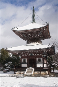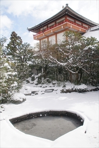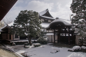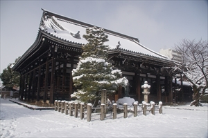 小川通に面した本法寺(ほんぽう-じ)は、本阿弥家の菩提寺であり、一門の墓もある。山号は叡昌山(えいしょう-ざん)という。外護者・理哲尼の父・狩野叡昌の名に因んでいる。 日蓮宗本山。本尊は十界大曼茶羅。 末寺52あり、日蓮宗京都16本山の一つ、京都21カ本山の一つに数えられた。 ◆歴史年表 室町時代、1427年頃より、日親(にっしん)は洛中洛外で布教を行う。 永亨年間(1429-1441)、日親は四条高倉に弘通所を開いている。 1436年/1437年頃、旧11月16日、本阿弥清信が中山門流の不受不施の日親を開祖にして、東洞院綾小路に創建したという。(寺伝) 1439年、日親は室町幕府6代将軍・足利義教に、法華信仰と他宗排斥を勧めて布教が禁じられた。 1440年、日親は投獄される。寺は破却された。 1441年、義教暗殺(嘉吉の乱、かきつのらん)に伴い、日親は赦免された。過酷な拷問により言葉が不自由になりながらも布教を続ける。 1455年/康正年間(1455-1457)、第102代・後花園天皇より寺領を贈られ、四条高倉辺の官地に本堂が再建された。 1460年、日親が鎌倉での布教中に、東福寺僧衆により寺は破却されたともいう。三条万里小路に移転したともいう。 1462年、日親の肥前での布教に対して、日親は再び捕縛される。寺は二度目の破却になる。日親の母の死で再度恩赦になる。 1463年/1464年/1487年、三条万里(までの)小路に再再建された。関西中山門流の本寺になる。 1487年、日親は門徒の行動規定になる「本法寺法式」を定める。 1536年、比叡山衆徒による洛中洛外の日蓮宗21寺を襲った事件、「天文法華の乱(天文法乱)」により破却され、焼失した。堺に一時逃れた。 1542年、第105代・後奈良天皇より勅許が下り、天文年間(1532-1554)、7世・日便の時、一条堀川の一条戻橋付近(上京区、晴明神社付近)に再建された。 近世(安土・桃山時代-江戸時代)、中山門流上方3カ寺(ほかに京都・頂妙寺、堺・妙国寺)の一つに数えられる。 安土・桃山時代、1587年/1586年/1590年/天正年間(1573-1592)、豊臣秀吉の聚楽第造営に伴い現在地に移った。第10世・日通は、受不施の立場をとり、寺領千石の寄進を受ける。本阿弥光二・光悦父子も私財を投じて再建に尽力した。 1599年、本堂が建立される。長谷川等伯が本堂に龍図を描く。 江戸時代、第108代・後水尾天皇、水戸藩の徳川光圀、紀州徳川家の外護を受け寺は繁栄した。日蓮宗総本山・中山法華経寺(千葉市)輪番にあたる上方三山の一つになる。 1604年、李氏朝鮮の僧・松雲大師(惟政)が2カ月滞在している。 1605年、仁王門が建立された。 1623年、多宝塔が建立される。 1633年、末寺34寺を数えた。(「京本法寺末寺帳」) 1788年、天明の大火により、経蔵と宝庫以外の多くの伽藍を焼失し、その後、紀州家などの寄進により再建された。朱印11石、塔頭21、直末・孫末70カ寺を数えた。(「末寺帳」) 現代、1974年/1972年、中根金作により庭が修復される。 1986年、「三巴の庭」は、国指定名勝になる。 ◆日親 室町時代前期-後期の日蓮宗の僧・日親(にっしん、1407-1488)。男性。号は久遠成院(くおんじょういん)、通称は鐺冠(なべかぶり)日親など。上総国(千葉県)の生まれ。父・千葉一族・埴谷重継(その養子とも)。兄とともに妙宣寺の日英に師事した。中山法華経寺の5世・日暹(にっせん)、6世・日薩に師事した。1427年、上洛、一条戻橋で不惜身命、折伏逆化の説教を行う。筑前、鎌倉、1433年、中山門流の総導師として九州・肥前で布教する。1436年、鎌倉の日蓮系寺院が幕府により弾圧された「永享の法難」に遭う。1437年、激しい折伏により門流を破門された。上洛し本法寺を建立する。1439年、将軍・足利義教に法華信仰の受持と他宗(禅宗)の排斥を勧めたが、伝道も禁止される。1440年、直訴のための『立正治国論』の清書中に投獄され拷問を受けた。本法寺は破却される。1441年、赤松満祐の乱に伴う足利義教の横死により釈放された。本法寺を再建した。1441年、1460年、九州遊行し、肥前国・光勝寺に赴く。領主と対立し、本法寺は再度破却される。1463年、投獄された。1464年、赦免、本法寺を再再建する。1487年、本法寺法式を定める。『本法寺縁起』を起草する。 獄中で激しい拷問を受けた。熱湯の入った鍋を頭に被せられ、舌も切られたという。このため、頭皮は焼けただれ窪み、頭髪は剃ることもできず鋏で切っていたという。後世、江戸時代に「鍋かむり/ かんむり(冠)日親/冠鐺(かんとう)日親」と呼ばれる。帰依者も多かったという。 鍋は生涯頭から取れなかったという伝承もある。著『立正治国論』『折伏正義抄』など。82歳。 ◆本阿弥 清信 室町時代の本阿弥 清信(ほんなみ-きよのぶ、?-?)。男性。本阿弥光悦の曾祖父にあたる。刀剣の鑑定、研磨などを家業とした。室町幕府6代将軍・足利義教に仕える。だが、義教の怒りに触れて投獄される。獄舎内で日親を知り、深く帰依する。赦免されて後、剃髪し、日親により法名「本光」を贈られ、寺の大檀越になった。以後、本阿弥家は寺の外護を続け、名に「光」の一