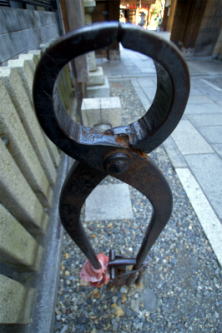 千本通東にある石像寺(しゃくぞう-じ)は、2本の5寸釘と釘抜のある「御礼絵馬」で知られている。 正式には家隆山光明遍照院(かりゅうざん-こうみょう-へんしょういん)石像寺という。「釘抜地蔵(くぎぬき-じぞう)」「くぎぬき-さん」と親しまれている。 浄土宗知恩院末寺。本尊は釘抜地蔵尊。 洛陽四十八願所地蔵めぐり(京都四十八願寺)の第16番札所、札所本尊は釘抜地蔵尊。京の通称寺霊場第4番、釘抜地蔵。 諸病回復、無病息災、健康長寿、苦悩解消、下の病平癒などの信仰がある。 ◆歴史年表 平安時代、819年、開基・弘法大師(空海)は、自ら石像を彫り、あらゆる苦しみから救済する「苦抜(くぬき)地蔵」と名付けたという。(『蓮門精舎旧詞』)。当時は、真言宗の「光明遍照院石像寺」と呼ばれた。当初は8町四方(873m)の敷地を有した。 鎌倉時代、12世紀(1101-1200)末、重源(1121-1206)が中興し、浄土宗に改宗される。(『浄家寺鑑』)。百万遍知恩寺に属したともいう。その後、衰微した。 歌人・藤原家隆(1158-1237)が当寺で落髪、入寺し、以後、山号は家隆山になる。 中世(鎌倉時代-室町時代)、衰退する。 近世(安土・桃山時代-江戸時代)、四十八願寺参り第8願所になる。(『京羽二重』) 安土・桃山時代、1556年頃、「釘抜地蔵」と呼ばれる。 江戸時代、1614年、西蓮社巌誉(雲海?)により中興された。(『蓮門精舎旧詞』) 寛文年間(1661-1673)、釘抜地蔵尊は第112代・霊元天皇の命により、僧・宝山が洛外・六地蔵以外の48か寺の地蔵尊を選んだ、洛陽四十八願所の霊場のひとつになる。 1730年、西陣焼けで焼失する。(『月堂見聞集』)。後に、北野社内の神宮寺の移築により再興された。(『坊目誌』) ◆空海 奈良時代-平安時代前期の真言宗の開祖・空海(くうかい、774-835)。男性。俗姓は佐伯氏、諡号は弘法大師。讃岐国(香川県)の生まれ。父・豪族の佐伯田公(義通)、母・阿刀氏。788年、15歳で上京し、母方の叔父・阿刀大足に師事し儒学を学ぶ。791年、18歳で大学明経科に入るが、中途で退学し私渡僧(しどそう)として山岳修行を始め、四国の大滝岳や室戸崎などで山林修行した。797年、『聾瞽指帰(ろうこしいき)』を著す。798年、槙尾山寺で沙弥になり、教海と称する。804年、東大寺戒壇院で具足戒を受ける。遣唐使留学僧として唐へ渡り、805年、長安・青竜寺の恵果(けいか)により両界、伝法阿闍梨の灌頂を受ける。806年、当初の20年の義務期間を2年に短縮して帰国、多くの経典、密教法具などを持ち帰る。入京できず太宰府・観音寺に住した。809年、入京を許される。810年、高雄山寺(神護寺)を経て、811年、乙訓寺に移り、約1年間任に当たった。別当になる。812年、乙訓寺を訪れた天台宗開祖・最澄は、空海と会っている。その後、空海は高雄山で最澄らに金剛界結界灌頂を行った。後、二人は決裂し、断絶する。813年、東大寺別当、819年頃/818年、高野山を開く。822年、東大寺に灌頂道場(真言院)を開く。823年、東寺を真言密教の道場にした。824年、高雄山寺を神護寺と改名する。神泉苑で祈雨の修法を行う。827年、大僧都になる。828年、綜芸種智院を創立した。832年、高野山で万灯会、834年、正月、宮中中務省で後七日御修法を営む。830年、『秘密曼荼羅十住心論』を著す。高野山で亡くなり、東峰に葬られた。62歳。 ◆重源 平安時代後期-鎌倉時代前期の浄土宗の僧・重源(ちょうげん/じゅうげん、1121-1206)。男性。俗名は刑部左衛門尉重定、字は俊乗坊、号は南無阿弥陀仏。京都の生まれ。父・紀季重(きの-すえしげ)/季良。1133年、13歳で醍醐寺に入り出家し、金剛王院・源運に学ぶ。上醍醐の円明房に止住した。高野山に登り、後に法然に浄土教を学ぶ。大峯、熊野、御嶽、葛城などで修行した。下醍醐に栢杜堂を建て、上醍醐の一乗院、慈心院塔に結縁する。1167年-1176年、宋に3回留学し浄土教、建築法を学んだという。異説もある。現地で栄西に遭う。1168年、栄西とともに帰国した。1180年、兵火により東大寺が炎上し、源頼朝の寄進、再建に際し、1181年、重源は造東大寺大勧進職に就く。1185年、大仏開眼会を催した。1186年、周防国が東大寺造営料国になり、国司になり、材の巨木を東大寺まで運ぶ。1190年、大仏殿が上棟した。1191年、法然を東大寺に招き、浄土三部経の講義を開いたという。1195年、大仏殿落慶法要を行う。宋の鋳物師・陳和卿(ちん-なけい)の協力を得て、天竺様(大仏様)を輸入し造立した。大和尚位に叙せられる。1196年、脇侍、四天王などの木像、石像を造立させる。 1203年、総供養を終えた。著『南無阿弥陀仏作善集』。86歳。 周防・阿弥陀寺など各地に寺院を建立する。備前・船坂山を開き、播磨・魚住泊(うおずみ-の-とまり)の改修、架橋、池の改修も行う。 ◆藤原 定長 平安時代後期-鎌倉時代前期の公卿・藤原 定長(ふじわら-の-さだなが、1149-1195)。男性。寂蓮。父・藤原光房、勧修寺流藤原氏出身。受領、蔵人・検非違使・弁官の三事兼帯、蔵人頭、1189年、参議に就く。摂関家家司、院司も務める。源平内乱
