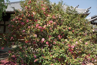 椿寺(つばき-でら)は、散椿(ちりつばき)の銘木が境内にあり寺号の由来になった。正式には昆陽山(こや-さん/こんよう-さん)地蔵院(じぞう-いん)という。昆陽山とは地蔵菩薩が摂津国昆陽寺より遷されたことに因む。 浄土宗、本尊は阿弥陀如来。 本堂脇壇の聖観世音菩薩は、洛陽三十三観音巡礼第29番札所。江戸時代、洛陽四十八願所地蔵めぐり(京都四十八願寺)の第12番札所、札所本尊は昆陽野地蔵(鍬形地蔵)。京の通称寺霊場8番、椿寺。 禁酒祈願、痔治療祈願、地蔵尊には安産祈願、子授けなどの篤い信仰がある。御朱印(3種)が授けられる。 ◆歴史年表 奈良時代、726年、行基が第45代・聖武天皇の勅願により創建したという。当初は、摂津国昆陽池畔(兵庫県伊丹市)に一宇を建てたことに始まるという。(寺伝、『山州名跡志』) 平安時代、京都の衣笠山南麓、内野に移されたという。七堂伽藍が建てられたという。(寺伝)。当初は八宗兼学だった。 南北朝時代、1391年/1392年、内野合戦(明徳の乱)の兵火により全焼失している。 1397年、足利義満は、北山殿(金閣寺)建立の際の余材で、地蔵院を再建したという。仮堂に地蔵菩薩を安置した。(『雍州府志』) 室町時代、1577年、清道が中興した。 安土・桃山時代、1582年、本能寺の変の際に、明智光秀は当寺の寺域に本陣を張ったという。 1587年、豊臣秀吉の北野大茶会の際に、散り椿を当寺に献木したという。秀吉の別荘として使われたともいう。 1589年/天正年間(1573-1591)、秀吉の命により現在地(一条紙屋川西)に移された。 江戸時代、寛文年間(1661-1673)、昆陽野地蔵(鍬形地蔵)は、第112代・霊元天皇の命により、僧・宝山が洛外・六地蔵以外の48か寺の地蔵尊を選んだ洛陽四十八願所の霊場の一つになる。 1671年、住持・善曳の時、知恩院末と改め浄土宗になる。本尊は五却思惟阿弥陀如来とした。 ◆行基 飛鳥時代-奈良時代の僧・行基(ぎょうき/ぎょうぎ、668/667-749)。男性。百済系の渡来人・高志(こし)氏。河内国(大阪府)の生まれ。父・高志才智、母・蜂田古爾比売。681年/682年、出家、官大寺で法相宗などを学ぶ。691年、高宮寺で具足戒を受けた。畿内に道場、寺を建立し、溜池、溝・堀、架橋、困窮者の布施屋建設などの社会事業を行う。704年、生家を家原寺とし住した。717年、民衆煽動と僧尼令に反した寺外活動の咎で、詔により弾圧を受ける。731年、弾圧を解かれた。732年、河内国狭山下池の築造に関わる。734年、東大寺大仏建立の詔が発布、勧進の任を務めた。736年、インド出身の僧・菩提僊那一行来日に際し太宰府で迎えた。738年、朝廷より行基大徳の称号が授与される。740年以降、東大寺大仏建立に協力する。741年、聖武天皇と恭仁京郊外の泉橋院で会見した。743年、東大寺大仏造営の勧進になった。745年、朝廷より日本初の大僧正位を授けられる。菅原寺(喜光寺)で亡くなる。地図の行基図を作成したという。東大寺「四聖」の一人。 80/82歳。 ◆早野 巴人 江戸時代中期の俳人・早野 巴人(はやの-はじん、1676-1742)。男性。通称は甚助、別号は夜半亭など。下野国(栃木県)の生まれ、江戸へ出る。榎本其角、服部嵐雪らに師事、高野百里、稲津祇空らと交わる。享保年間(1716-1735)半、京都へ移る。1737年、江戸に戻った。日本橋石町に夜半亭を結び、与謝蕪村、砂岡雁宕らを指導した。67歳。 ◆天野屋 利兵衛 江戸時代中期の商人・天野屋 利兵衛(あまのや-りへえ、1662頃-1727)。男性。名は直之。代々九郎兵衛を称した。後に松永土斎と称した。元禄年間(1688-1704)、熊本藩細川家、岡山藩池田家大坂屋敷に出入りした。1694年、天野屋九郎兵衛を襲名した。北組惣年寄になり、1695年、罷免される。72歳。 理兵衛は総年寄で大坂思案橋東詰に住み、奉行咎めにより所払いになる。地蔵院の隅に庵を建て松永士斎と名乗り、茶道三昧の余生を送ったという。 墓は地蔵院(北区)にある。 ◆仏像 ◈本堂に本尊の秘仏「阿弥陀如来像」を安置する。五劫思惟(ごこうしい)阿弥陀如来像であり、「お多福(おたふく)阿弥陀」とも呼ばれている。東大寺の俊重坊重源を招来し、江戸時代前期、1671年に浄土宗に改宗して後の本尊になる。 ふくよかな顔立ちをし胸前で合掌する。五劫思惟とは、阿弥陀如来が一切の衆生を済度するための願を起こし、五劫(劫は極めて長い時間。古代インドでの時間単位のうち最長)という計り知れない長時間にわたり思惟を続けたことをいう。このため、螺髪(らほつ)は伸びきり、後ろ髪は背中まで達した。 正月三カ日のみ一般公開される。 ◈観音堂中央厨子内に、秘仏の「十一面観世音菩薩立像」を安置している。平安時代の慈覚大師(794-864)作という。当初は南都にあり、霊告により地蔵院に遷されたという。(『山城名跡志』)。金箔押、右手を垂れ、左手に宝瓶を持つ。翻波式衣紋、一木造、五尺三寸(1.6m)。 ◈御前立の観音菩薩がある。脇侍は雨宝童子、春日龍神を安置する。 ◆地蔵 地蔵堂には「昆陽野(こやの)地蔵」、「木納屋(このや)地蔵」、「鍬形(くわがた)地蔵」