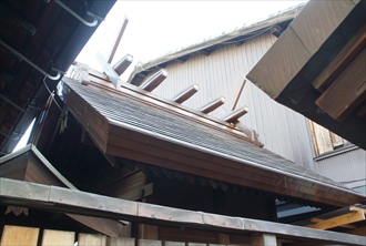 ◆鳥居 本殿、拝殿の間に角柱の神明鳥居が建てられている。近代、1868年に建立された。