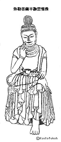 広隆寺(こうりゅう-じ)は、京都最古の寺といわれている。飛鳥時代、厩戸王(うまやどのおう、聖徳太子)が建立したとされ、王が建立した七大寺の一つになる。「太子堂」、「太秦の太子さん/お太子さん」ともいわれている。 かつて「秦寺(はたでら)」、「太秦公寺」、「秦公寺(はたぎみでら/うづまさでら)」、「太秦寺」などと呼ばれ、秦氏により建立された氏寺だった。「蜂岡寺」、「葛野寺(かどのでら)」、「桂林寺(けいりんじ)」、「三規寺」とも呼ばれた。山号は蜂岡山という。蜂岡とは、「蓮華の寺ある岡」として現在地を示すともいう。 真言宗御室派。本尊は変遷し、かつては国宝指定第1号の弥勒菩薩像だった。その後、薬師如来を経て、現在は厩戸王(聖徳太子)立像を安置する。 厄除け、疾病除けの信仰がある。 「ミシュラン・グリーンガイド・ジャポン 2つ星観光地(弥勒菩薩半跏像は3つ星)」(改訂第4版)に選ばれている。 ◆歴史年表 創建、変遷の詳細は不明。 飛鳥時代、603年、旧11月、新羅系渡来人氏族・秦河勝が、厩戸王(聖徳太子)より譲られた弥勒菩薩を本尊として建立したという。蜂岡(はちおか)寺」と称したという。(『日本書紀』)。当初は葛野の九条河原里-九条荒見里にあったとも、北野廃寺の地(紙谷川上流右岸、北野白梅町)にあったともいう。 616年、新羅より金銅救世観音像を贈られたという。 622年、19年間の歳月をかけ、堂塔、伽藍が完成した。また、同年に厩戸王(聖徳太子)が亡くなり、その供養のために創建されたともいう。この頃、「葛野秦寺」と呼ばれた。(「広隆寺縁起」・『朝野群載』所収)。第33代・推古天皇より水田、山野を寄進される。 623年、新羅、任那より使者が訪れ、葛野秦寺は仏具、舎利、仏像を贈られたという。(『日本書紀』) 奈良時代以来、厩戸王(聖徳太子)建立七寺、八寺の一つに数えられた。 724年、勅願により伝法会を毎年修するようになる。 平安時代、794年、現在地に移されたという。 797年、勅願により本尊を薬師如来にする。 818年、大火により焼失した。南大門、東大門、西大門、築地は焼失を免れた。 824年、勅願により仏名会を宮中で修した。 836年/承和年間(834-848)、道昌僧都は別当になり再興する。中興の祖になった。 承和年間(834-848)、再興されたという。金堂、歩廊、中門、講法堂、鐘楼、食堂、僧房、宝蔵、政所庁屋、厨房、大炊屋、湯屋、厩屋、客房などが建てられていた。(「広隆寺縁起資財帳」「広隆寺資財交替実録帳」) 860年、第56代・清和天皇の命により薬師如来を勅封(勅命によって封印する)にしたという。 864年、清和天皇が別当・道昌に勅し、願徳寺の薬師仏(七薬師像)を迎え祈願し、病が平癒したという。以後、薬師如来が本尊になるともいう。 873年、「広隆寺資財帳」が作成された。 890年、「広隆寺資財交替実録帳」が作成される。 899年、第60代・醍醐天皇により近江国水田が寄進された。 947年、第62代・村上天皇により水田が寄進される。 980年、第64代・円融天皇により近江国・犬上荘が寄進された。 1012年、恵心僧都は常行堂念仏を3日間修し、中日の夜に摩多羅神を祀る。牛祭りの始まりになる。 1016年、三条上皇(第67代)が行幸し、9日間の参籠をした。 1104年、第72代・白河天皇が行幸する。 1123年、第74代・鳥羽天皇は松原荘を寄進した。 1127年、鳥羽天皇が行幸、参籠する。 1132年、鳥羽天皇が再び行幸、参籠した。 1150年、焼失している。 1165年、勅命により公家・藤原信頼が再建した。金堂(現在の講堂、赤堂)、阿弥陀堂、常行堂、回廊、中門、鐘楼、経蔵も再建される。 鎌倉時代、1248年以来、勅願により毎年、法華会を修する。 1251年、中観上人(澄禅)は桂宮院を再興する。足利尊氏は安堵状を下付する。 1254年、第88代・後嵯峨天皇が行幸、参籠した。 1262年、第90代・亀山天皇は近江森尻荘を寄進する。 1265年、後嵯峨天皇が行幸、参籠した。 1266年、後嵯峨院が行幸、参籠した。 1291年、第92代・伏見天皇の母・洞院愔子(とういんいんし、玄輝門院)が落髪する。 1302年、伏見天皇は山城・安養寺荘、近江・世理荘を寄進する。 1307年、第94代・後二条天皇は山城・安養寺荘、近江・世理荘を寄進する。 1311年、第95代・花園天皇は山城・安養寺荘、近江・世理荘を寄進した。 1315年、院宣(上皇・法皇の命により、院庁の役人が出す公文書)により和泉国・秦寺を管領する。 室町時代、文明年間(1469-1487)、現在の薬師堂が建立された。 1490年、第103代・後土御門天皇は大和・仲居荘、丹波・桐野荘を寄進する。 1532年、後土御門天皇は、厩戸王(聖徳太子)像に天皇即位の御衣を贈る。 1565年、講堂が修理され、規模縮小になり、檜皮葺より瓦葺に替える。 安土・桃山時代、1577年、織田信長は朱印状を下付する。 1585年、豊臣秀吉は600石の安堵状を下付する。 江戸時代、徳川家康以来、歴代将軍は600石黒印状を安堵した。 1662年、第111代・後西天皇は厩戸王(聖徳太子)像に天皇即位の御衣を贈る。 1701年、第113代・東山天皇は厩戸王(聖徳太子)