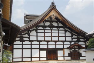双ヶ丘の東、衣笠(きぬがさ)山の南に位置する妙心寺(みょうしん-じ)は、山号を正法山(しょうぼう-ざん)、法山ともいう。 豊かな自然環境のため、「西の御所」と呼ばれている。境内は10万坪(13万坪とも、33万㎡、東西500m、南北619m)の広大な敷地を有している。京童の囃子言葉では、「妙心寺の算盤面」といわれた。健全な禅は、安定した寺院経済を基礎にして成立するという伝統がある。 全国・世界に3400の末寺、在籍僧数7000人を数える。臨済宗妙心寺派の大本山であり、臨済宗14派の中でも最大の教団(全体の6割)を形成する。境内、境外には48の塔頭(子院)がある。このうち、山内塔頭は38院、境外塔頭は龍安寺を含めて10院ある。 臨済宗妙心寺派の大本山。本尊は釈迦如来像。 「ミシュラン・グリーンガイド・ジャポン1つ星観光地」(改訂第4版)に選ばれている。 ◆歴史年表 鎌倉時代、かつてこの地には、花園上皇(第95代、1297-1348)の離宮「萩原殿(はぎわらどの)」「萩原御所」「仁和寺花園御所」)が営まれていた。 南北朝時代、1337年/1335年/1338年/少なくとも1342年以前、開基の花園法皇は、譲位後に落飾し、禅寺に改める。勅願により美濃山中より関山慧玄(かんざん-えげん)を招いて開山とした。(『正法山妙心禅寺記』『開山国師別伝』『妙心寺六百年史』『祖伝考彙』・『六祖伝別考』)。山号寺号の由来は、慧玄の師・大徳寺開山の宗峰妙超(大燈国師)の拈華微笑(ねんげみしょう)の逸話から「正法山妙心寺」と命名された。釈尊が嗣法の弟子・摩訶迦葉(まかかしょう)に向かって述べた「正法眼蔵涅槃妙心」より採られている。法皇は、玉鳳院を建て、慧玄に参禅した。当初は大徳寺末寺だったという。 1338年、 花園法皇は、玉鳳院を建て、慧玄に参禅した。 1342年、花園法皇は仁和寺花園御所(萩原殿)跡を禅苑とし、慧玄に管領させた。(「妙心寺文書」・「院宣」)。妙心寺が開創になる。 1347年、花園法皇は死の前年に、寺の造営を願う「往年の宸翰(しんかん、直筆文書)」をしたためる。(「玉鳳院文書」・「往年の宸翰」)。寺領紛争が起こる。 1348年、旧11月、 花園法皇が亡くなる。 1351年、旧8月、光厳上皇(北朝初代)の院宣により、慧玄が帰山する。(「妙心寺文書」・「光厳上皇院宣」) 1360年、旧12月、慧玄が亡くなり、開山堂(微笑庵)に祀られた。 1361年、 慧玄の弟子、授翁宗弼(じゅおう-そうひつ)が住持になる。 室町時代、1398年、室町幕府3代将軍・足利義満の祈願所になった。 1399年、義満への謀反「応永の乱(大内義弘の乱)」が起る。住持の6世・拙堂宗朴(せつどう-そうぼく)が、乱に関与した守護大名・大内義弘と師壇関係にあり、義満の怒りを買う。宗朴は、その後も義弘との関係を解消しなかった。このため、宗朴は青蓮院に幽閉の身になる。寺領・寺地は、青蓮院の義円、南禅寺の徳雲院・廷用宗器(ていよう-そうき)に移された。宗器は寺名を「龍雲寺」に改め、徳雲院付属とし妙心寺は中絶した。 室町時代、妙心寺は大徳寺とともに、在野の寺院、「林下(りんか)」の代表にされた。 1432年/永亨年間(1429-1441)、南禅寺・宗器より根外宗利に寺領が返還される。尾張犬山・瑞泉寺から入寺した後の7世・日峰宗舜は、管領・細川持之の外護により開山堂を再興し、中興の祖になった。方丈、開山堂の微笑堂を復興する。 文安年間(1444-1449)、8代将軍・足利義政により寺領が寄付されている。 1448年、細川持之は養源院(日峰塔所)を建立した。 1450年、細川勝元は龍安寺を建立する。 1462年、9世・雪江宗深(せっこう-そうしん)は、妙心寺、龍安寺の住持になる。宗深は、妙心寺の再中興開山になる。 1467年、応仁・文明の乱(1467-1477)で多くの堂塔を焼失した。 文明年間(1469-1487)、中興事業がなり、大徳寺と対抗するまでに栄えた。 1476年、会計簿(米銭納下帳、日単簿)が作成され、財政の立て直しが行われる。 1477年、旧閏1月、宗深が第103代・後土御門天皇の綸旨を奉じて再興した。細川勝元・政元親子らの援助を得る。(「妙心寺文書」)。方丈が上棟される。宗深は中興の祖になった。 1480年、政元は衡梅院(雪江宗深塔所)を建立した。 1481年、政元は四派の一つ龍泉庵を建立する。 1484年、利貞尼(りていに)は境内地を寄進し、四派の一つ東海庵を建立した。 1486年、政元は妙心寺を再興する。 永正年間(1504-1521)、17世・鄧林宗棟(とうりん-そうとう)の時、大徳寺より独立している。(「妙心寺文書」・「正法山誌」) 1507年、宗棟は、勅許により、奉勅入寺式を挙行した。妙心寺の大徳寺からの独立を意味した。細川澄元の軍勢がこれを警護した。 1509年、第104代・後柏原天皇の綸旨により、独立本山とし、紫衣勅許の禅寺、大徳寺と同格の寺になる。宗棟が住し、奉勅入寺の制が始まるともいう。妙心寺と大徳寺は絶交する。 美濃加茂城主・斎藤利国の妻の利貞尼が、仁和寺真乗院領の土地を買い求め、妙心寺に寄進、境内は3倍に広がる。賦課金制度が始まる。(「妙心寺文書」) 1516年、大休が住した。 1523年、塔頭の龍泉庵、東海