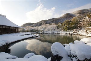 天龍寺(てんりゅう-じ)は、境内10万㎡を有する。日本で最初に史跡・特別名勝に指定された。山号は霊亀山(れいきさん)という。百人一首の小倉山別称の亀山に由来する。正式には天龍資聖禅寺(てんりゅう-ししょうぜんじ)という。 臨済宗天龍寺派の大本山。本尊は釈迦如来。 1994年に、「古都京都の文化財」として、「世界遺産条約」に基づく世界文化遺産に登録されている。「ミシュラン・グリーンガイド・ジャポン1つ星観光地(庭園も1つ星)」(改訂第4版)に選ばれている。天龍寺庭圉は、「美しき日本-いちどは訪れたい日本の観光遺産」(日本交通公社、1999年)の一つに認定された。「京都市のバリアフリー・車椅子の方にもおすすめできる神社・寺院スポット一覧 (10件)」(介護アンテナ)の一つに選ばれている。 ◆歴史年表 平安時代初期、承和年間(834-848)、この地には、第52代・嵯峨天皇皇后・橘嘉智子(檀林皇后)の旧嵯峨院別館があった。皇后は別館を日本初の禅寺・壇林寺に改める。 その後、第60代・醍醐天皇皇子・前中書王兼明親王(さきのちゅうしょおう-かねあきら-しんのう、914-987)の亀山の山荘が営まれている。 第66代・一条天皇(在位: 986-1011)の頃、荒廃した。 鎌倉時代、1255年/建長年間(1249-1256)、後嵯峨上皇(第88代)により、仙洞御所(仙洞亀山殿、嵯峨殿)が営まれた。権大納言・西園寺実雄が造営の指揮をとる。広大な土地を有し、北は野宮神社、南は大堰川にまで及んだ。(『古今著聞集』巻8) 亀山上皇(第90代、1249-1305、在位:1259-1274)の離宮「亀山殿」が建てられる。第96代・後醍醐天皇(1288-1339)は、幼少期をこの地で過ごし修学する。 南北朝時代、1335年、第96代・南朝初代・後醍醐天皇は、亀山殿内に臨川寺を建立し、開山に夢窓疎石を迎えた。 1338年、後醍醐天皇の没後、足利尊氏は、夢窓疎石の勧めにより天皇の菩提を弔うために、亀山殿の地を新寺の建立地にする。 1339年、旧10月、光厳上皇(北朝初代)による院宣が下される。(「天龍寺重書目録」)。夢窓を開山、尊氏を開基として、勅願寺が創建された。当初は元号により、「暦応資聖(ししょう)禅寺」と称した。夢窓が住持を辞し、等持院主・古先印元を大勧進とした。都寺妙了と共に住持代行する。尊氏は荘園を寄進した。 1340年、仏殿、法堂、僧堂、庫裏、三門の造営工事が始まる。(『造営記』)。造営料所として尊氏の日向国、阿波などの庄を寄進し、光厳上皇は丹波弓削庄地頭職を寄進する。 1341年、夢窓が住持に復する。尊氏、夢窓も普請に加わり、芝土籠に土を入れ御堂へ運ぶ。寺号「暦応資聖禅寺」について、比叡山延暦寺などの反発により、直義が見たという大堰川から天に昇る金龍の夢(瑞夢)により、旧7月、「天龍資聖禅寺」に改められた。旧12月、直義により造天龍寺宋船(天龍寺船)2隻の元王朝派遣の許可が下りる。直義は、天龍寺を五山十刹位第2位にした。 1342年、旧4月、将軍・足利尊氏は、天龍寺を京都五山の第2位に定めた。秋、寺の造営費捻出のために、夢窓により、元へ貿易船、「造天龍寺宋船(天龍寺船)」が派遣される。国内に元の文物が持ち込まれ、莫大な利益をもたらした。法堂上棟、三門立柱し、尊氏、直義が参詣する。 1343年、仏殿、法堂、土地堂、祖師堂、方丈、書院、庫裏、三門、外門、総門、鐘楼など70余りの伽藍が完成する。(『造営記』)。春、天龍寺船が帰港した。 1344年、後醍醐天皇の霊廟が完成する。(『天龍紀年考略』)。ほぼ寺観を整える。北朝初代・光厳天皇が行幸した。 1345年、仏殿、法堂が完成し、後醍醐天皇の七回忌に、開堂法要が執り行われた。落慶法要は、夢窓が導師を務めた。尊氏、直義、守護大名など多数が参加した盛大なものになる。光厳上皇の臨幸供養は、延暦寺衆徒の延暦寺、東大寺以外の臨幸供養は認められないとした強訴により、取り止めになる。翌日の御幸になる。尊氏、直義も法会に加わる。(『太平記』『園太暦』『帥卿記』)。北朝第2代・光明天皇が入山する。夢窓により庭園が完成した。当時の境内は、東は釈迦堂、西は亀山、南は嵐山、北は法金剛院に及び、36町を有していた。 1346年、夢窓が「天龍寺十境」を定める。仏徳を賛美する韻文・頌(じゅ)を作る。光厳上皇が臨幸した。夢窓は雲居庵に退隠する。 1347年、光厳上皇が臨幸する。 1348年、輪蔵が完成した。 1350年、旧8月、光厳院、光明院が臨幸する。(『臨幸記』) 1351年、旧7月、僧堂が完成する。(天龍寺紀年考略)。夢窓が再住し、後醍醐天皇十三年忌仏事後、退院した。 1356年、焼失する。 1358年、旧1月、多くの伽藍が焼失した。雲居塔、多宝院、亀頂塔、霊庇廟は焼失を免れた。(『空華日用工夫略集』)。龍山徳見(りゅうさん-とくけん)を住持に再任し、春屋妙葩(しゅんおく-みょうは)が復興大勧進職に就く。(『園太暦』)。旧9月、将軍・足利義詮は、天龍寺を京都五山の第2位にする。(1度目の大火災) 1359年、幕府は天龍寺再建のために、棟別銭を徴する。 1360年、春屋は足利基氏の要請により、夢窓直弟子10人を鎌倉