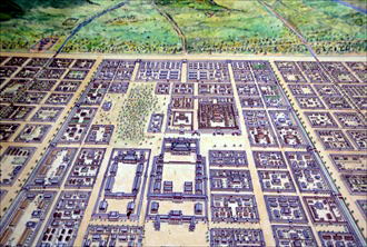 ![]() 「大極殿遺址道」の石碑、内野児童公園 ![]() 「大極殿遺蹟」、内野児童公園 ![]() 「大極殿遺蹟」の石碑、内野児童公園 ![]() 副碑、内野児童公園 ![]() 内野児童公園 ![]() 「源氏物語ゆかりの地」の説明板 ![]() 京都市の説明板 ![]() ![]() 平安京復元図、赤い点部分が現在地、手前の道は鳥羽の作道、その先に朱雀大路、「源氏物語ゆかりの地」の説明板より ![]() 【参照】朝堂院復元図、下に応天門・朝集堂、会昌門・朝堂、龍尾壇の上に太極殿、「平安宮-京都市建設局・京都市埋蔵文化財調査センター・京都市埋蔵文化財研究所」説明板(二条駅前)より 中央の建物が大極殿、赤い線が龍尾壇、説明板より![]() ![]() 太極殿遺跡の平面図、下が北になる。基壇縁石、礎石、築地跡などが再現されている。京都市の説明板より ![]() 北回廊復元図、京都市の説明板より ![]() 平安時代の櫛、京都市埋蔵文化財研究所、「源氏物語ゆかりの地」の説明板より ![]() 地蔵尊、内野児童公園 ![]() 千本丸太町交差点付近南側から。この付近に朝堂院の北回廊、その南に小安殿、大極殿などあったとみられている。 ![]() 歩道に埋められた「大極殿跡」のプレート ![]() 【参照】大極殿復元図(京都市平安京創生館)、説明板より ![]() 【参照】周辺全景、説明板より ![]() 【参照】大内裏復元模型(京都市平安京創生館) ![]() 中央の赤い四角部分が朝堂院跡、説明板より ![]() 「平安宮朝堂院址」の碑、千本丸太町交差点付近北西 ![]() 朝堂院復元図、下に応天門・朝集堂、会昌門・朝堂、龍尾壇の上に太極殿、「源氏物語ゆかりの地」の説明板より ![]() 【参照】平安神宮の応天門 ![]() 【参照】平安神宮の外拝殿(大極殿) ![]() ![]() 【参照】長岡京(左下)と平安京の位置関係(京都市平安京創生館)、説明板より ![]() 『源氏物語』・「賢木」、ROIS-DS人文学オープンデータ共同利用センター |