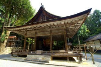 ![]() 拝殿(重文) ![]() 本殿(重文) ![]() 下殿の床下に大きな露岩がある。 ![]() 橘 ![]() 宇佐竈殿社 ![]() 気比社 ![]() 包丁塚